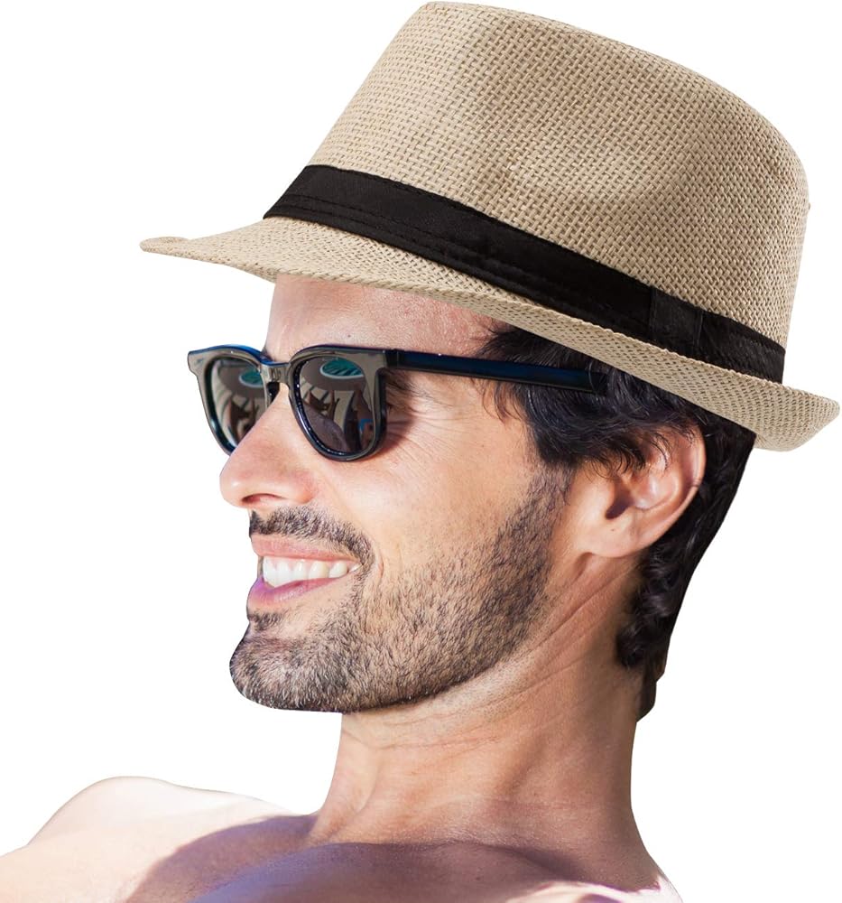 【GOOD MATERIAL】80% paper straw 20% Nylon. The materials are high quality, natural, healthy, no bad smell, breathable, lightweight, comfortable when you touch, do not fade, and UV Protection so you can wear the fedora sun hats without worry.
