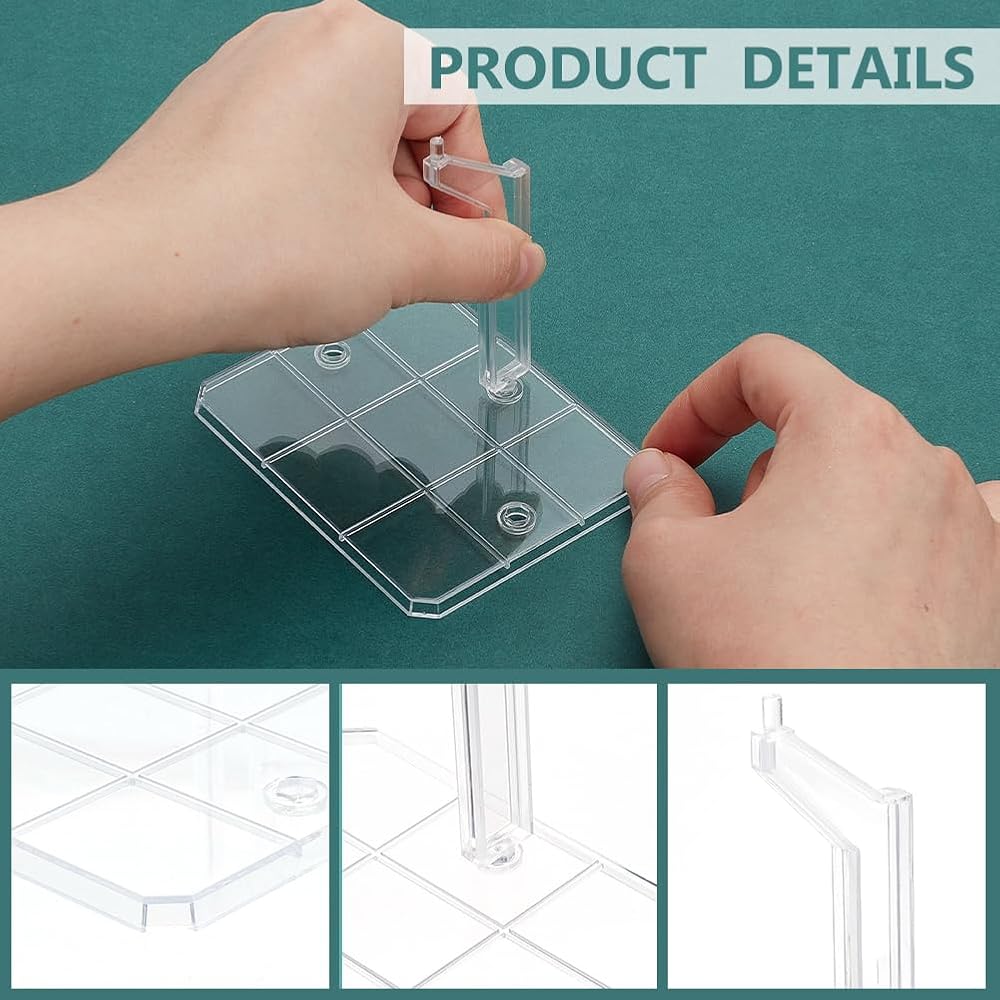 No Claws Design: The package includes 6 sets of action figure stand. large clear rectangle base making the stand more stable and not easy to topple. Note: The display stand is designed without claws, when using, just clip the top of the display rack into the hole of the model. Please check the picture display carefully before purchasing.