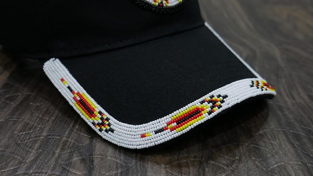 EYE-CATCHING STYLE: Turnheads with this unique cap showcasing traditional beadwork in rich colors. A standout accessory you'll feel proud to wear.