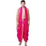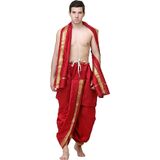 Woven Golden Border Ready to Wear Dhoti and Angavastram Set - Art Silk
