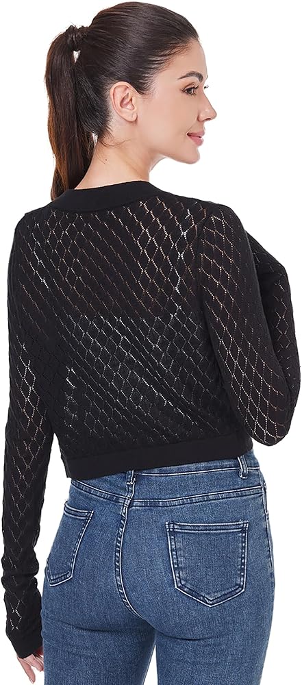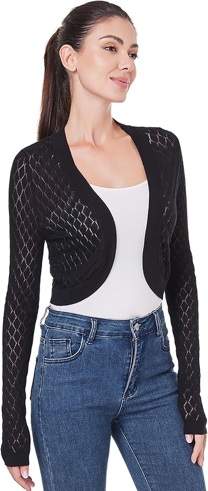 AmélieBoutik Women Open Front Bolero Shrug Long Sleeve Lightweight Knit Hollow Out Cropped Cardigan