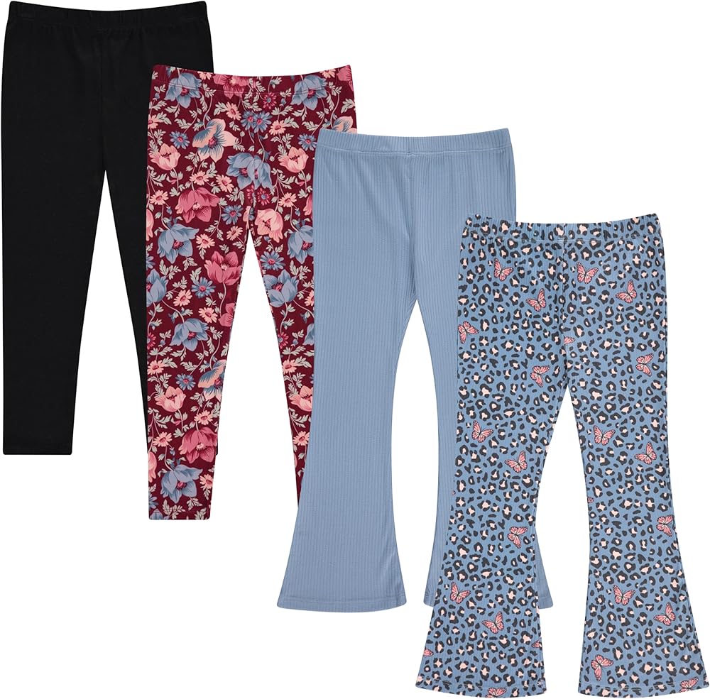 Upgrade your child's wardrobe with this stylish and versatile set of girls' leggings and flared pants. Each pack includes four pairs featuring a mix of solid colors, floral prints, and fun patterns like leopard print. Made from a soft and breathable cotton-polyester blend, these pants provide all-day comfort that is gentle on your child's skin. Designed for durability, these leggings and flared pants feature reinforced stitching and high-quality materials that can withstand regular wear and washing. The fabric retains its shape and vibrant colors even after multiple washes, making these pants a reliable choice for everyday wear. Whether your child is at school, playing with friends, or attending special occasions, these pants offer the perfect blend of style, comfort, and practicality. These pants feature an elastic waistband for a secure and comfortable fit, allowing your child to move freely and comfortably during any activity. The stretchy material and trendy flared design add a fun and stylish touch to your child's wardrobe, providing endless styling possibilities. Easy to care for, these leggings and flared pants are machine washable and designed to resist pilling and shrinking. This ensures they stay looking fresh and new wash after wash, providing long-lasting comfort and style. Make these versatile and durable pants a staple in your child's wardrobe, perfect for keeping them stylish and comfortable throughout the year.