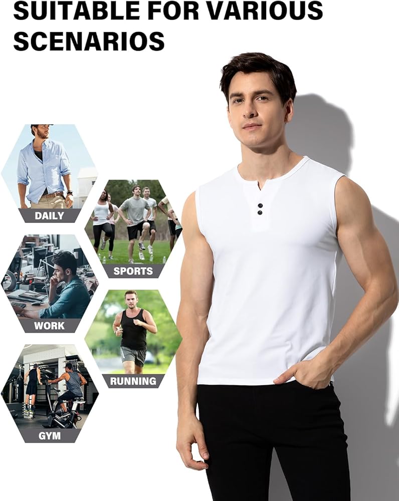 Sleeveless Design: Sleeveless shirts for men pack,make it suitable for summer or indoor sports wear, effectively releasing the arms and increasing freedom of movement.