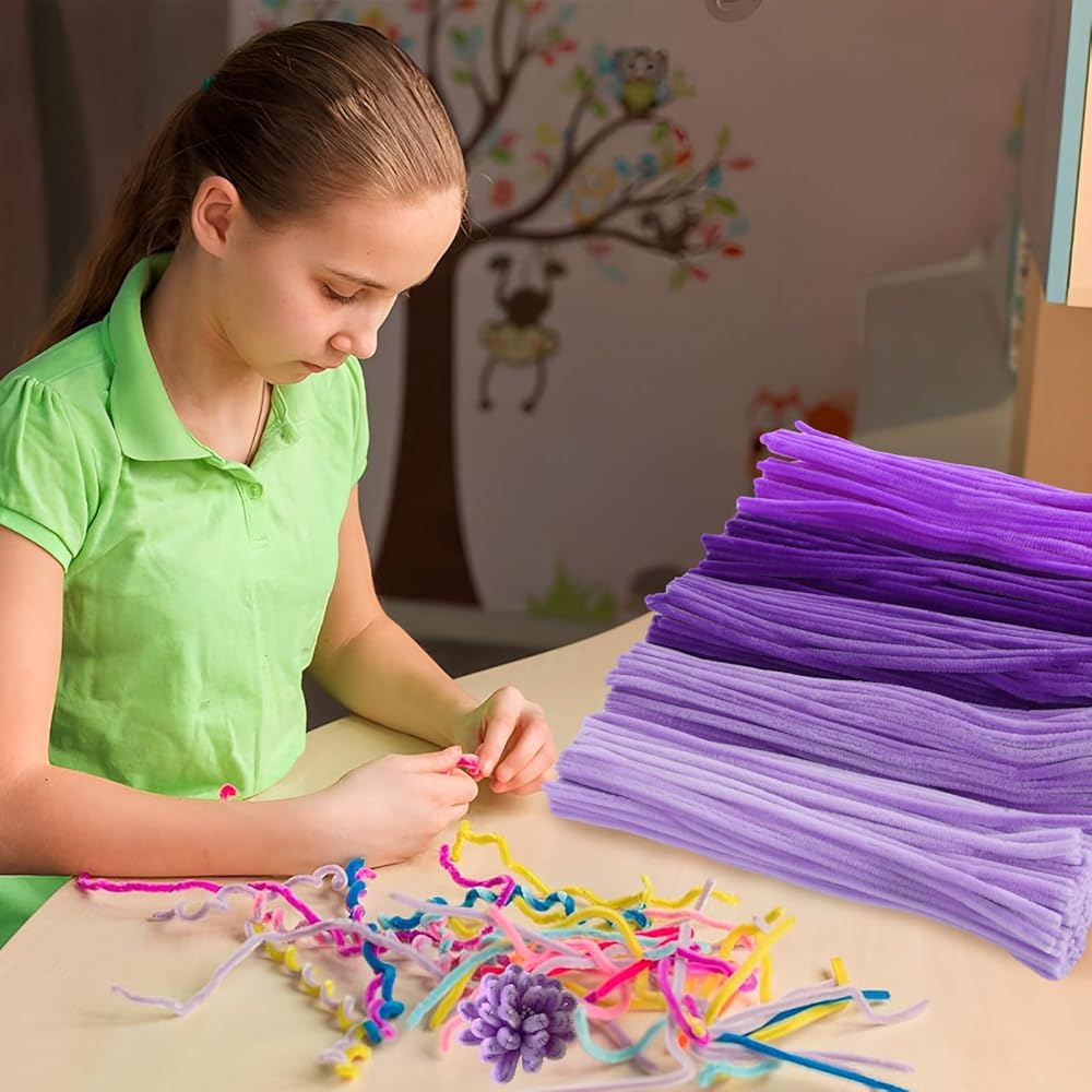 Exquisite Fuzzy Sticks Pipe Cleaners: Chenille stems are made of soft wire and thick polyester fiber, not easy to shed; Flexible, can be bent, twisted, curled, or wrapped to most shapes, decorations, and more