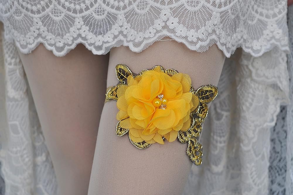 Quality-This garter is made of shining chiffon flower,pearls and beads are sewn on chiffon flower,one stitch and one thread.Although this garter is simple designed,it looks like very concision and elegant