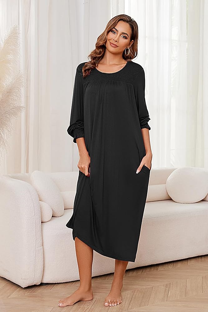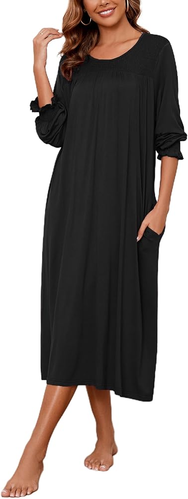 Long nightgowns with pockets - These womens night gowns for sleeping have a loose fit to allow your skin to breathe naturally,making them comfortable to wear every day, and also great as sleepwear dress,cotton night dress, pajama dress for women, house dresses for older women, and gowns for women sleepwear