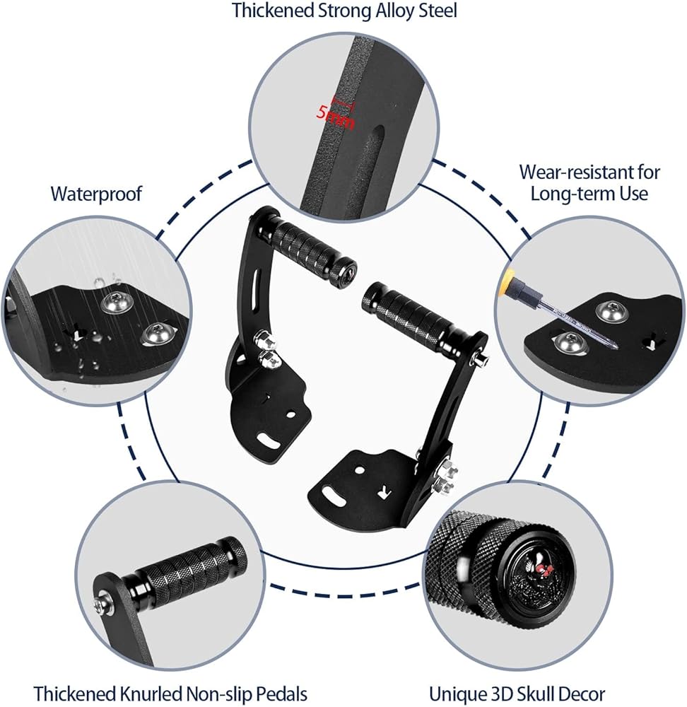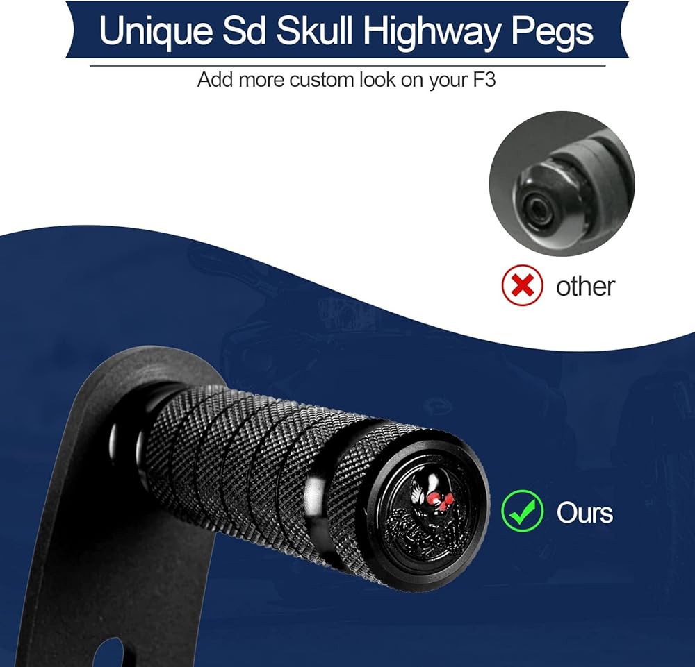 【 GREAT HIGHWAY PEGS FIT FOR SPYDER F3】 The pair of highway pegs fit for 2015-2023 Can Am Spyder F3 Floorboard Models (Factory Flooboards). Packgage includeds: left and right side highway peg, set of mounting hardware, 2pcs 3D skull stickers,installation instructions.