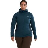 WARM POLARTEC FLEECE: The Arc'teryx Kyanite womens hoody is crafted from Polartec Power Stretch Pro fabric, delivering exceptional warmth and comfort. With a soft brushed interior and a durable nylon face, this fleece hoodie ensures you stay warm during chilly outdoor activities.