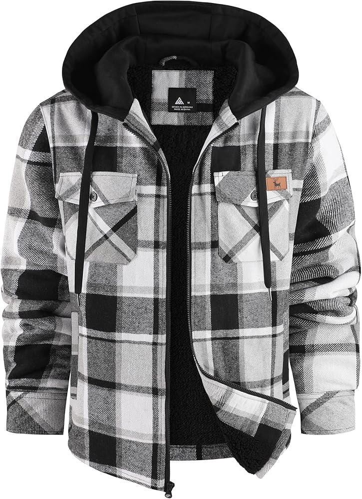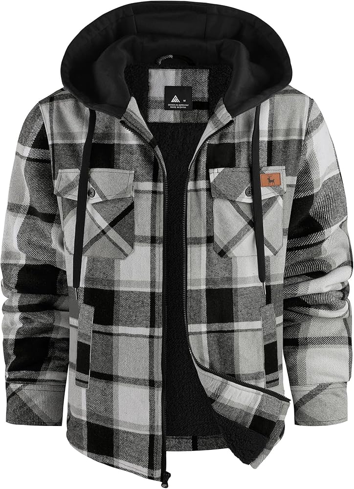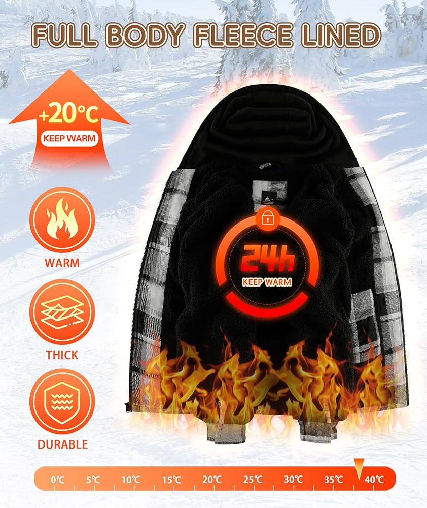 WARM & WINDPROOF: This winter fleece jacket for men is designed with a full zipper, which not only makes it easy to put on and take off, but also keeps the cold wind from blowing into your body. The design with an adjustable drawstring keeps the fleece hood close to your head to keep you warm