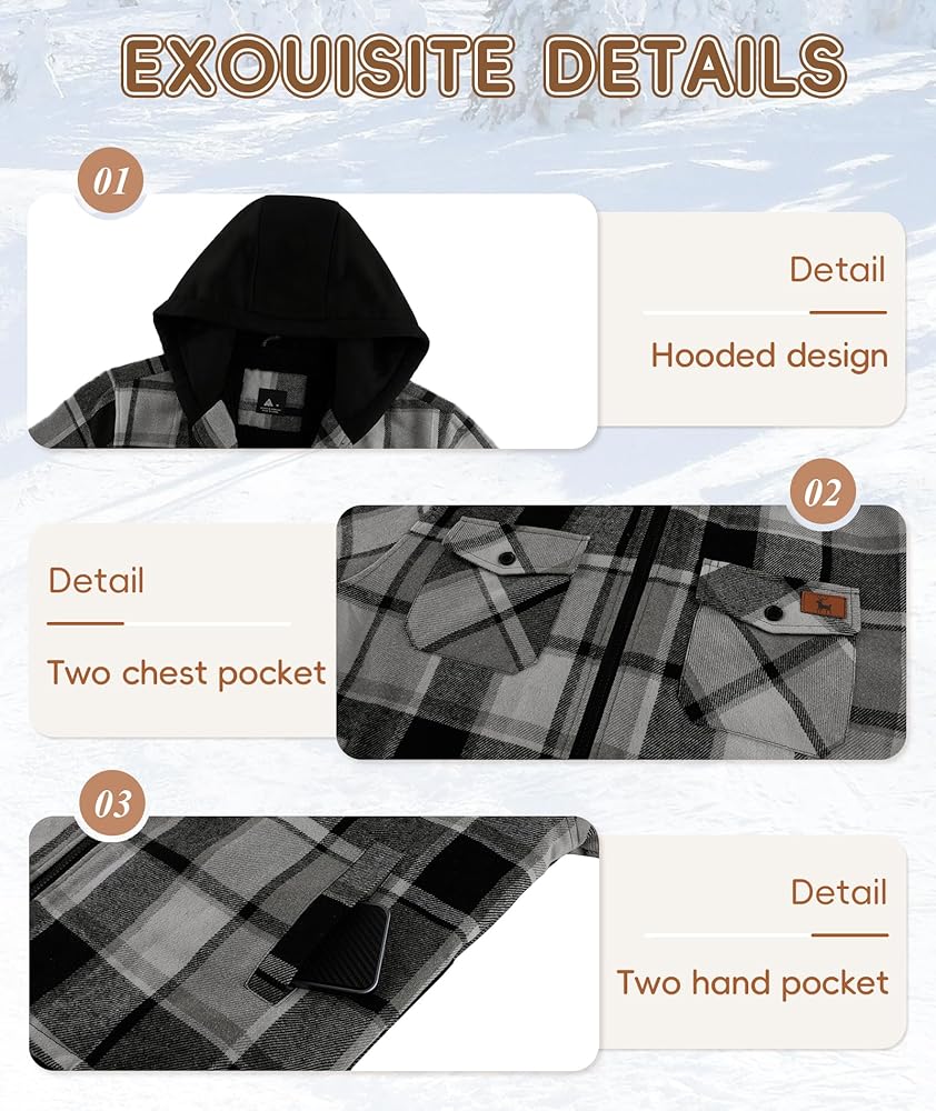 DESIGN FEATURES: This jacket includes 2 chest pockets and 2 side pockets. The chest pocket can hold small items such as key chains and bank cards, while the side pockets are convenient for accessing your cell phone. The classic plaid design fits perfectly with a variety of undergarments such as t-shirts, sweaters, hoodies and more