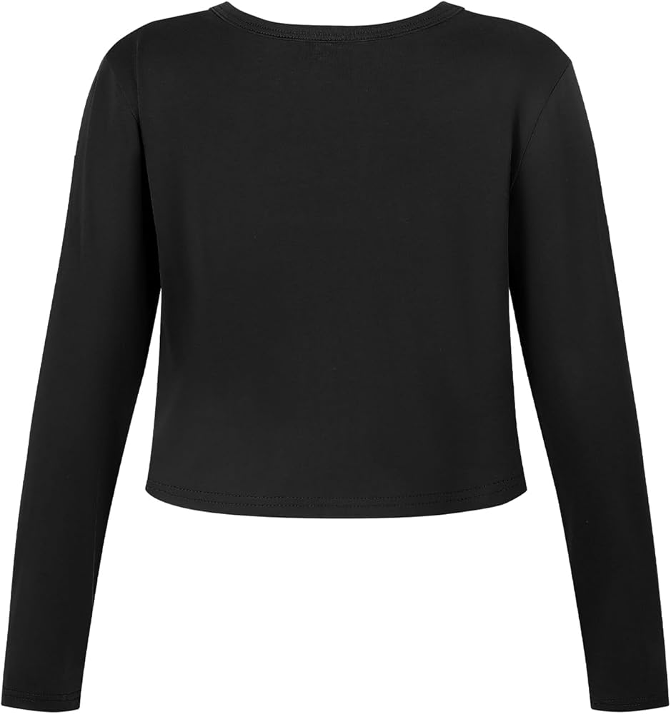 - Features: Solid color, long sleeve, round neck, cropped length, relaxed fit basic and casual kids crop tops