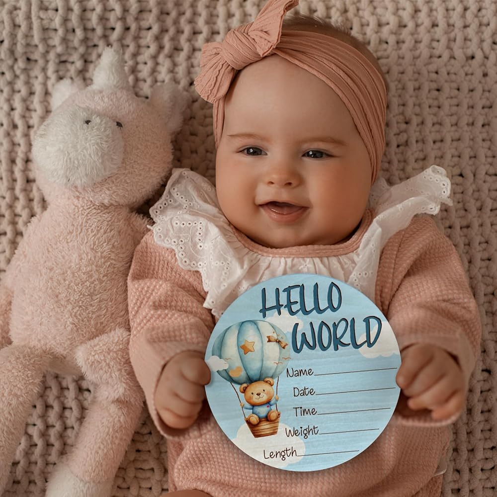 - 3.Say "Hello World" in style with our charming newborn sign and add a touch of joy to any nursery or photo shoot.