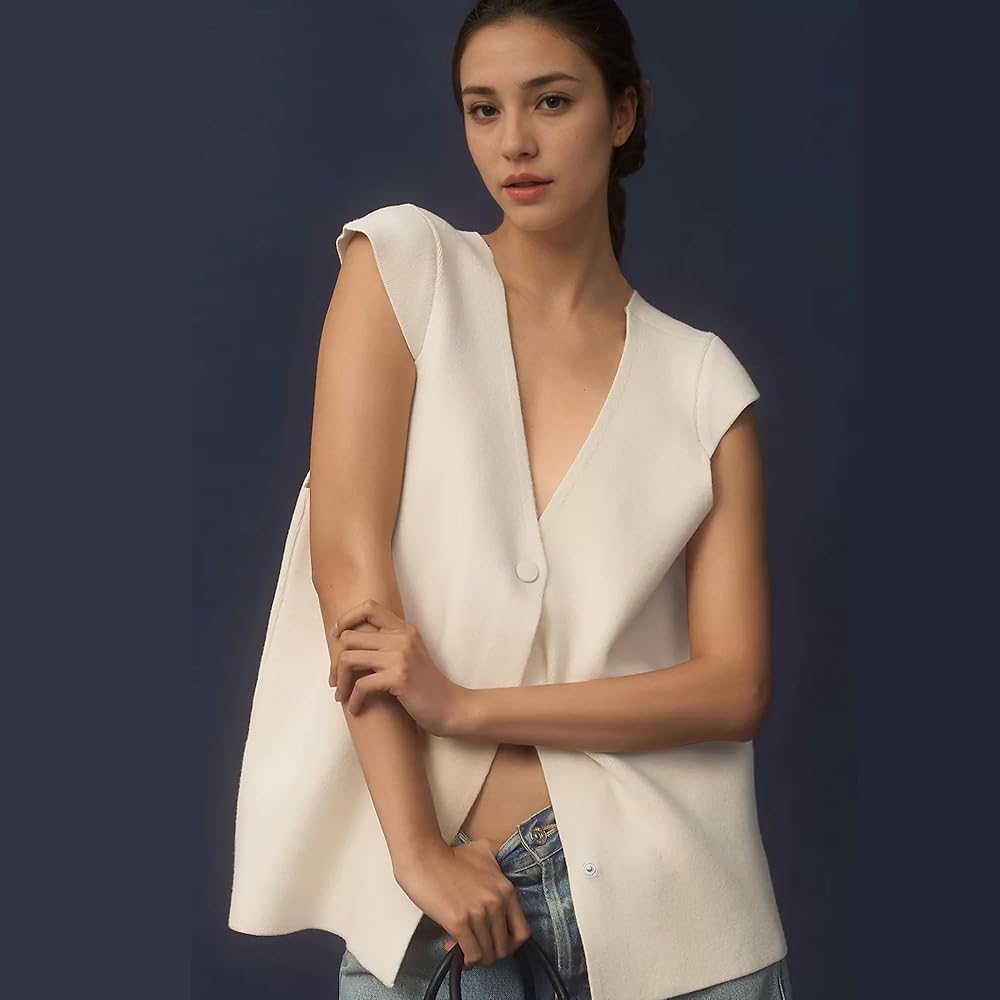 Features: Loose fit sweater vest for women, sleeveless, unique cuff design, deep v neck, solid color, front button down design, dressy light jacket with nice cutting, adds a elegant and delicate style to your spring and fall outfits.