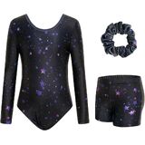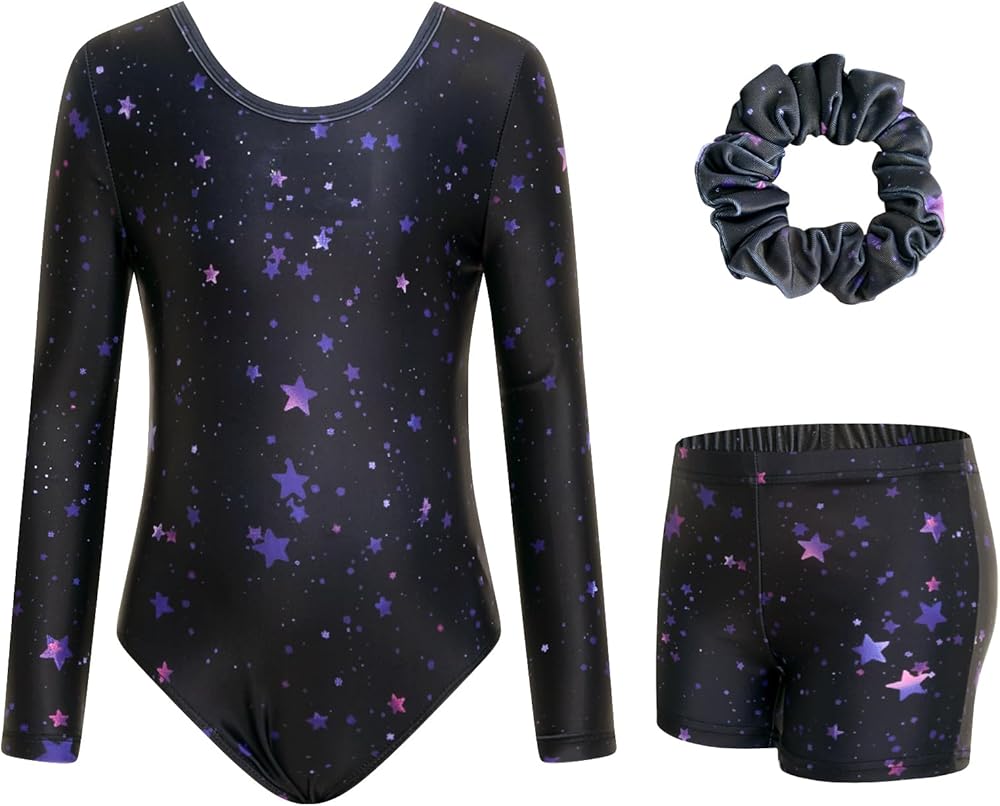 【3 Pcs Set of Leotards】Girl gymnastics leotard set contains a professional dance ballet leotard with shorts and hair scrunchies, designed for girls aged 3-12 years old, provide great coverage for freer movement.
