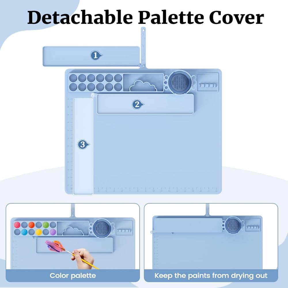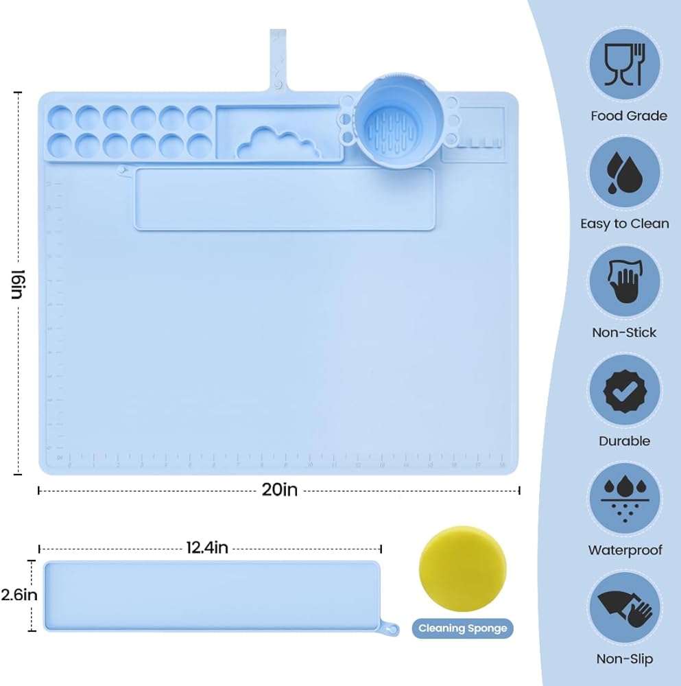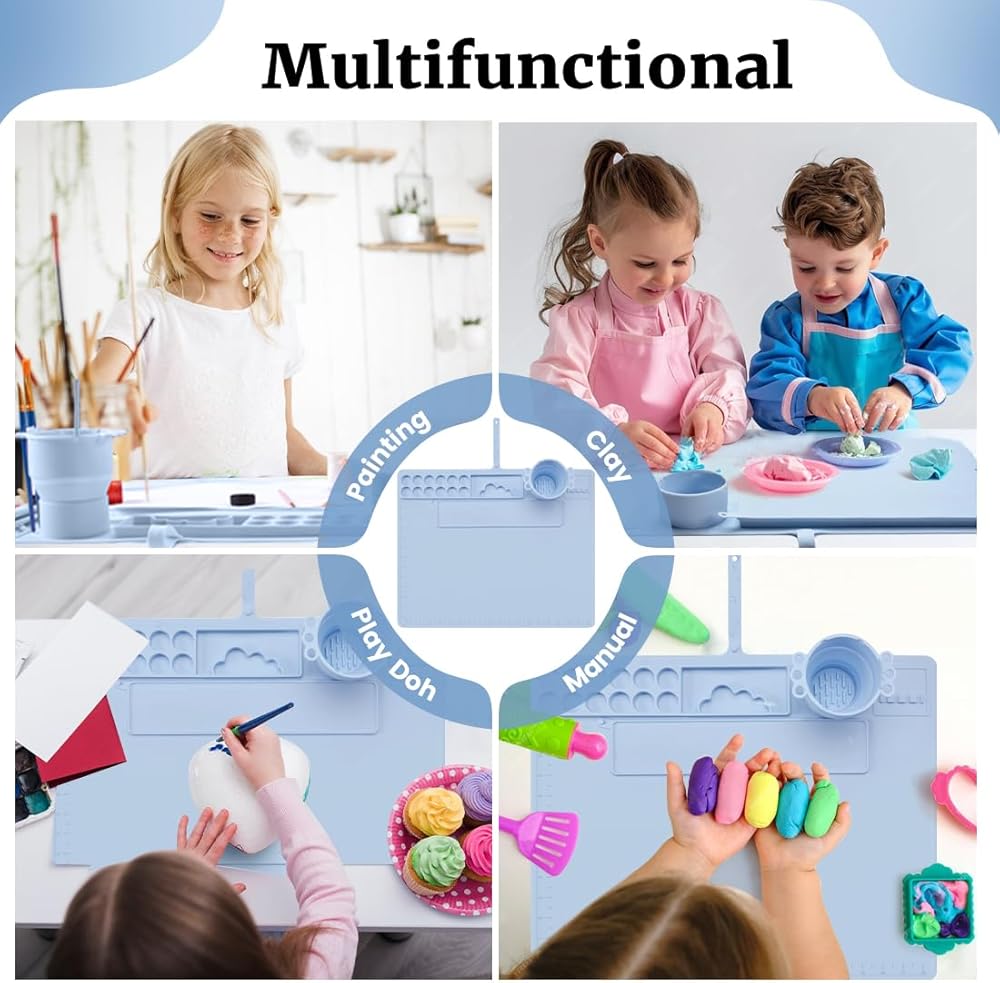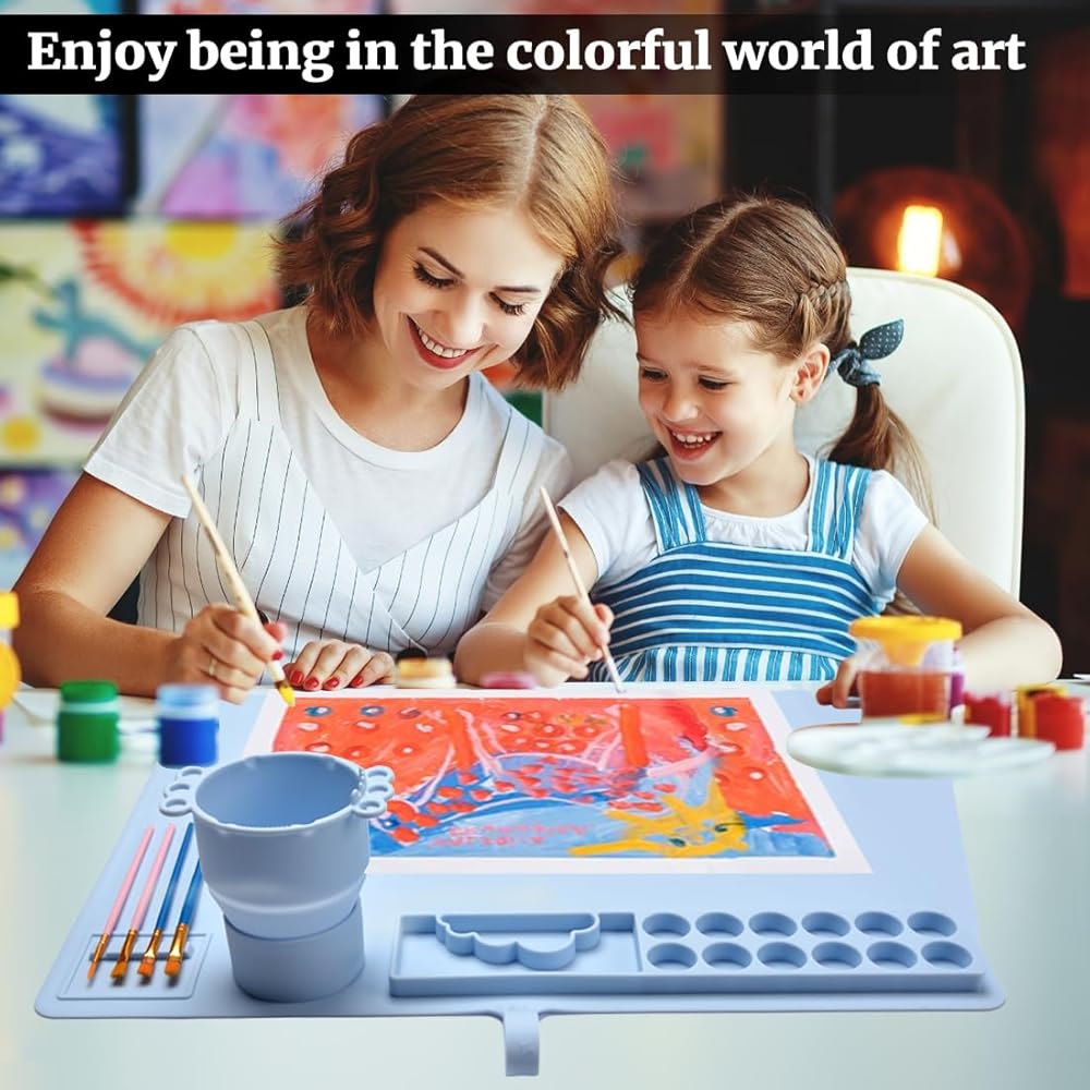 Silicone Painting Mat - 20"X16" Painting Station for Kids with 1 Water Cup Reusable, Non-Slip, and Easy to Clean Perfect for Arts, Crafts, and DIY Projects (Blue)