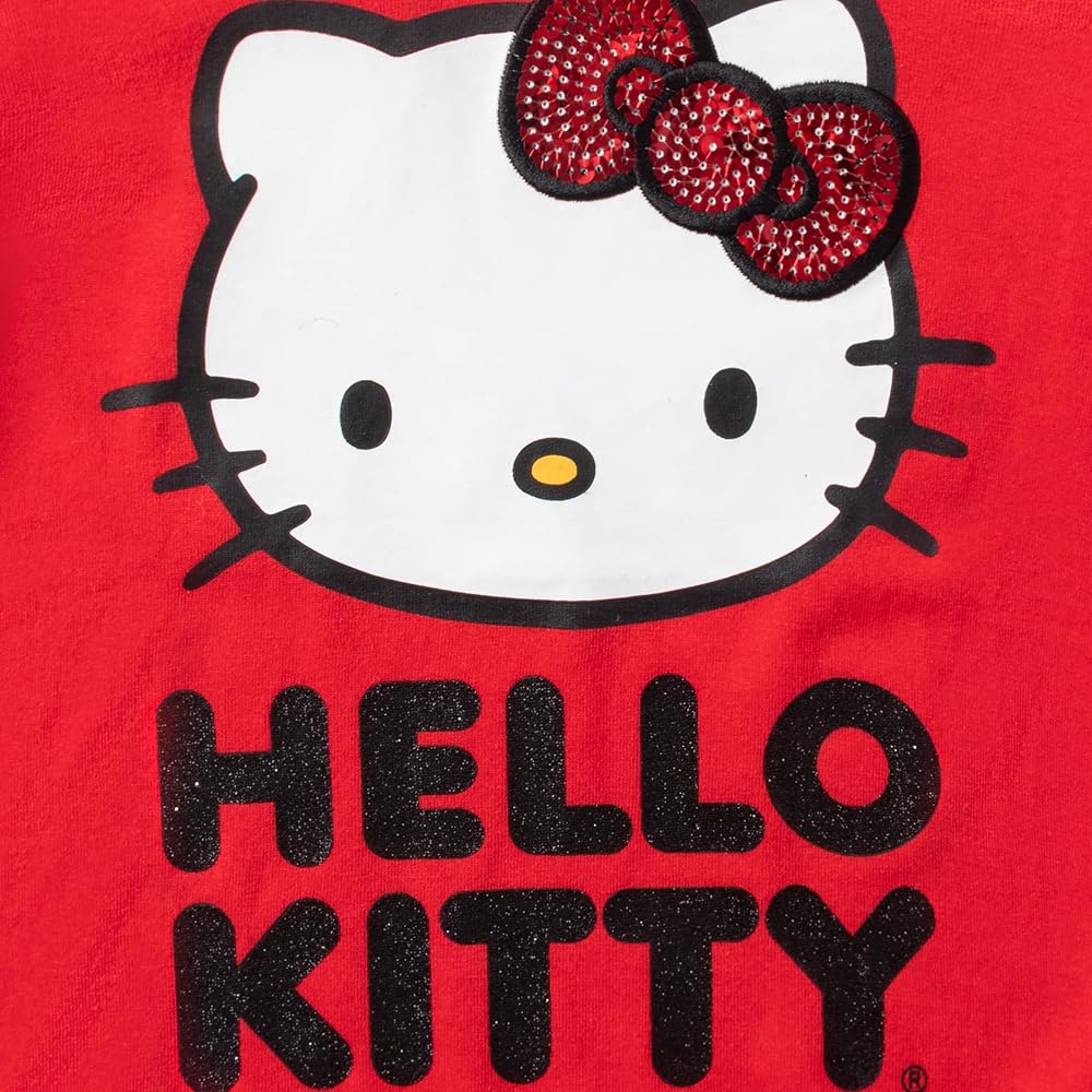 Immerse yourself in the world of Hello Kitty with our officially licensed Hello Kitty Mix and Match 2 Short Sleeve T-Shirts, Short, and Flared Pants 4-pack set for big girls. Featuring their favorite character, Hello Kitty.