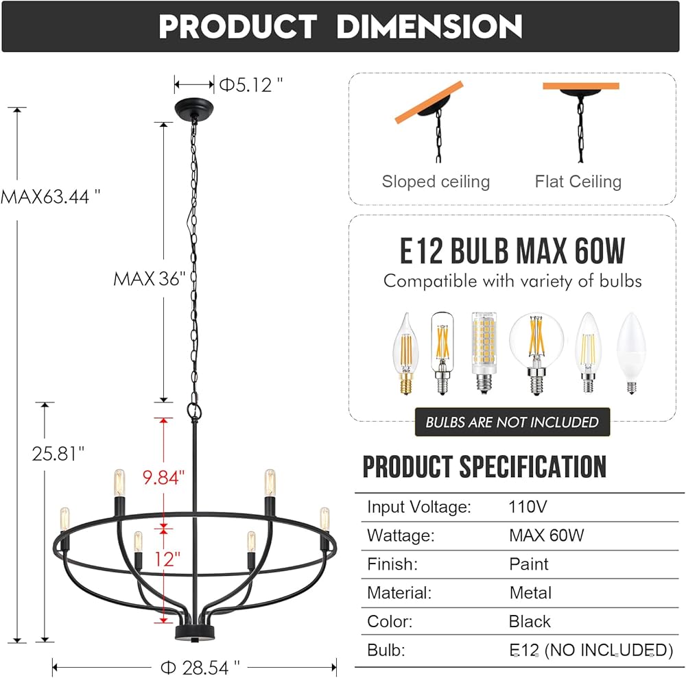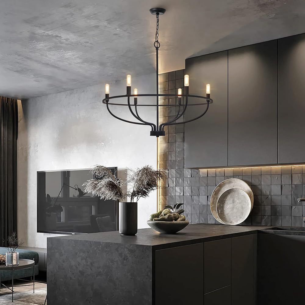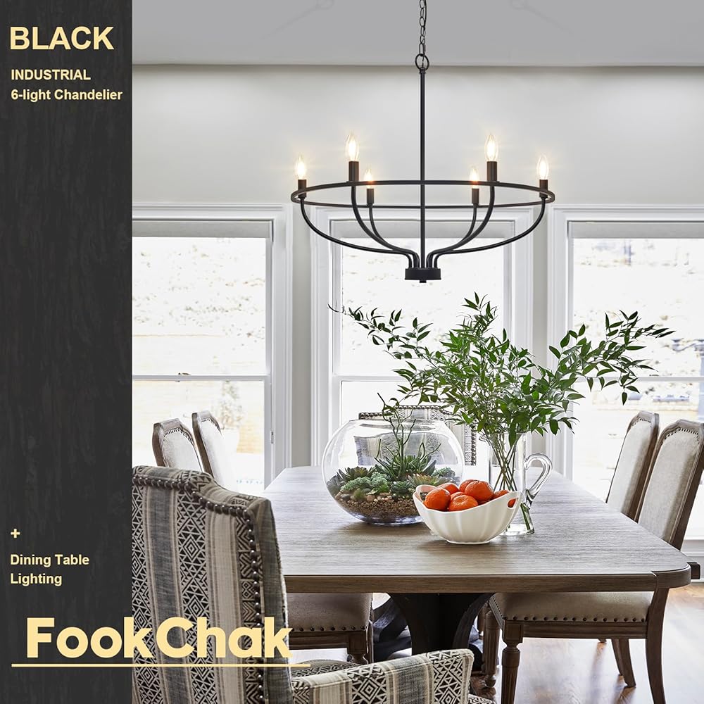 Black Dining Room Light Fixture, 6-Light Farmhouse Black Chandelier for Bedroom Metal Candle Chandeliers Hanging Lighting for Kitchen Living Room Entryway Foyer, 28.54in