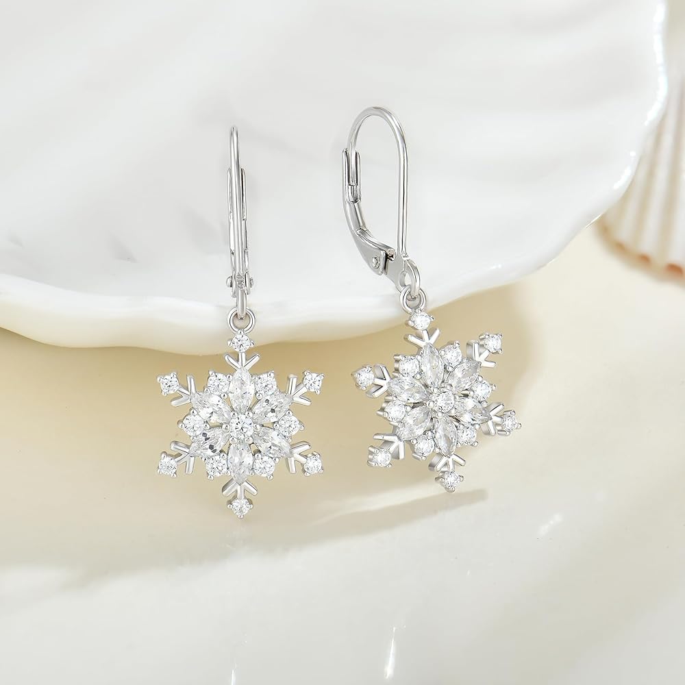 Winter Occasion Accessory❄️: Celebrate winter in style with these spectacular hand-finished snowflake dangle earrings. Showcasing an ethereal, finely crafted snowflake motif dangles with sparkling cz accent, they are dainty and perfect to pair with your winter wonderland look.