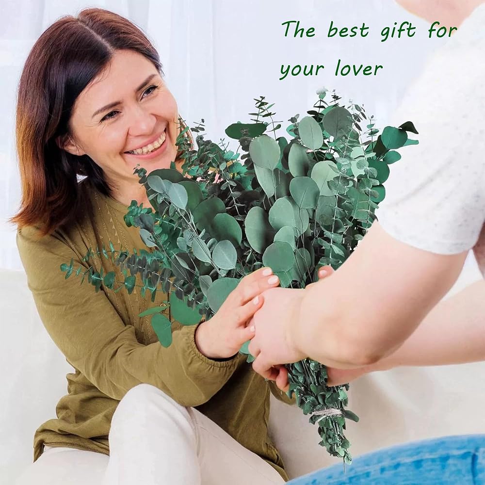 Gift: These preserved eucalyptus stems make a perfect gift for friends, family, Mom and Dad. Our special preservation technology ensures that they retain their fresh appearance even after being picked. In humid environments, preserved eucalyptus may release a green liquid, which is colored glycerin. This is non-toxic and harmless, so there is no need to worry.