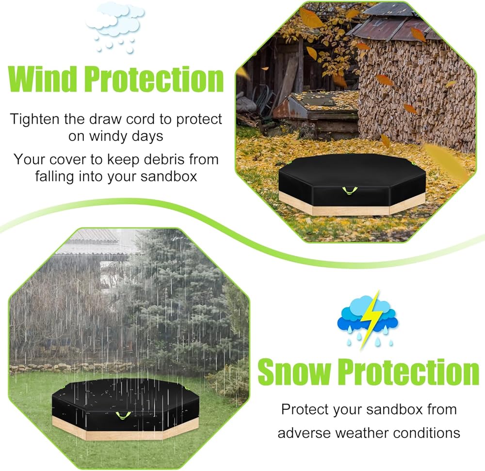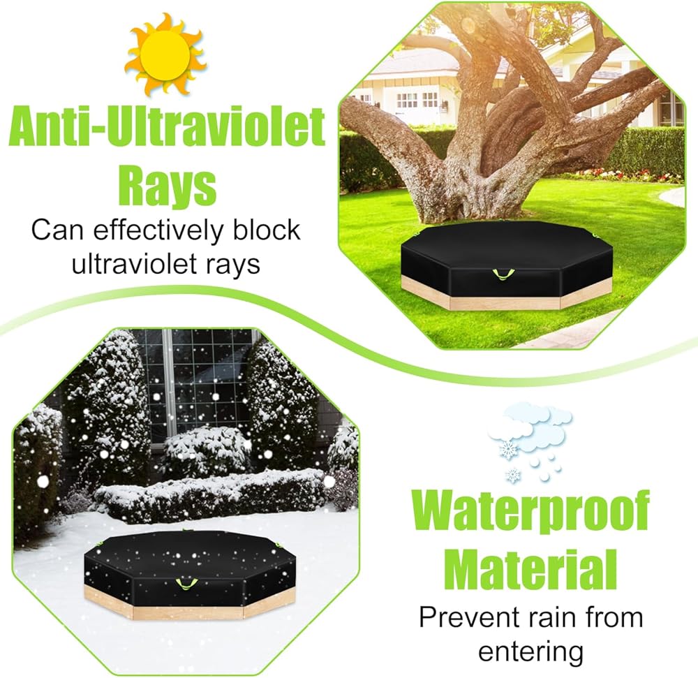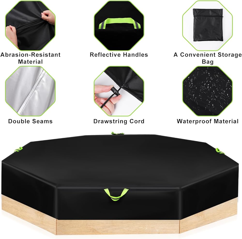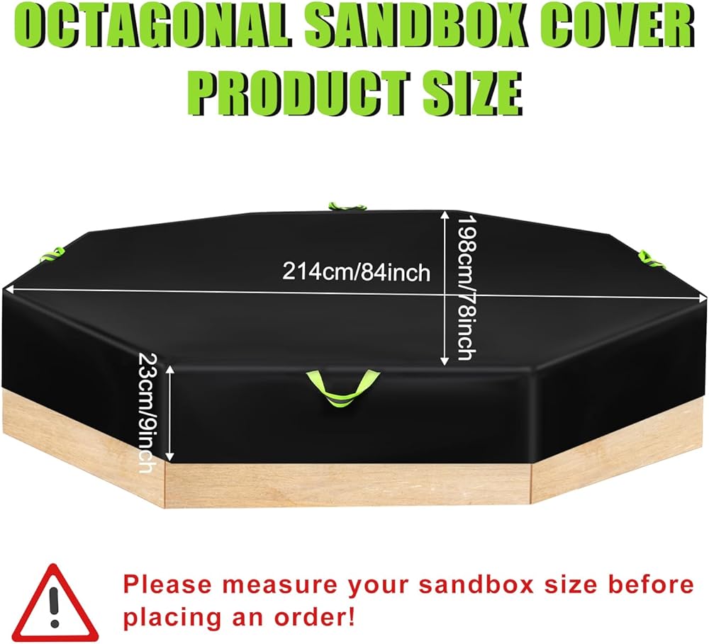 Product Includes: You will receive 1 black octagon sandbox cover and 1 storage bag. The sandbox cover measures about 214x198x23cm/84x78x9in, enough size can meet your needs.