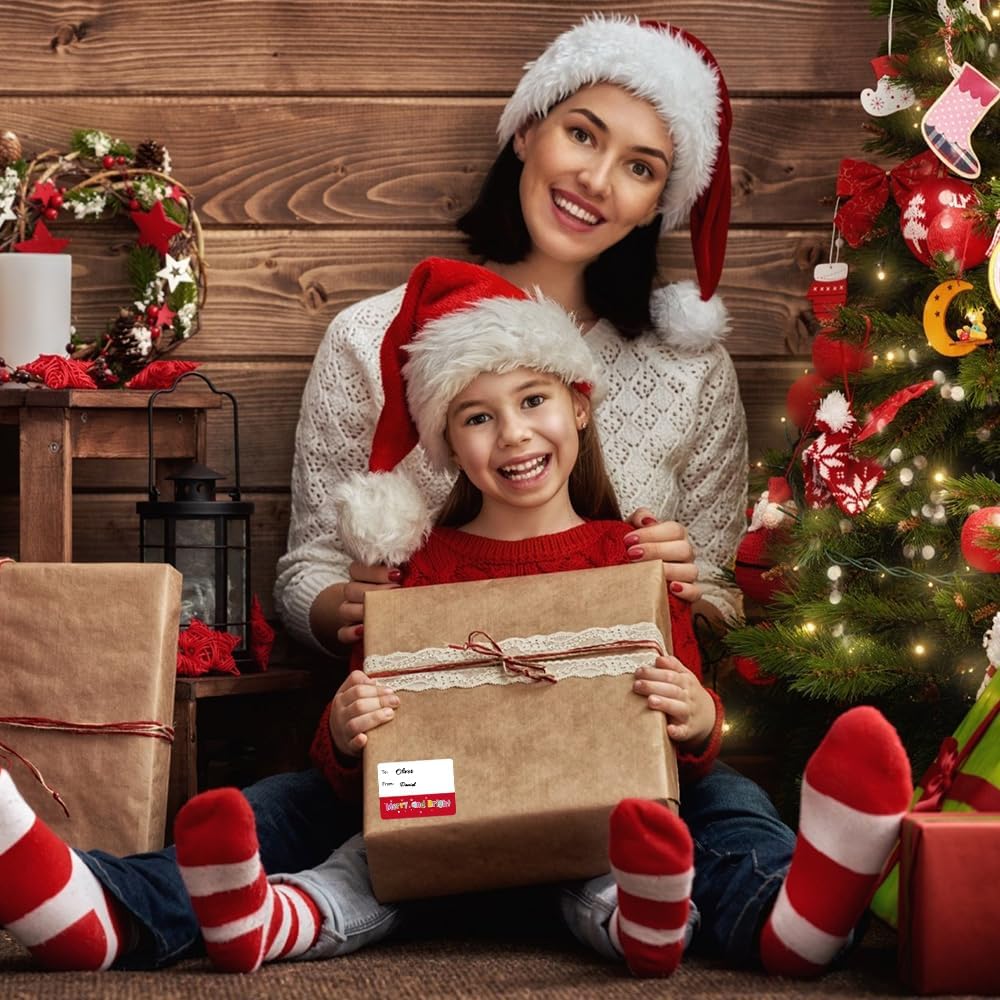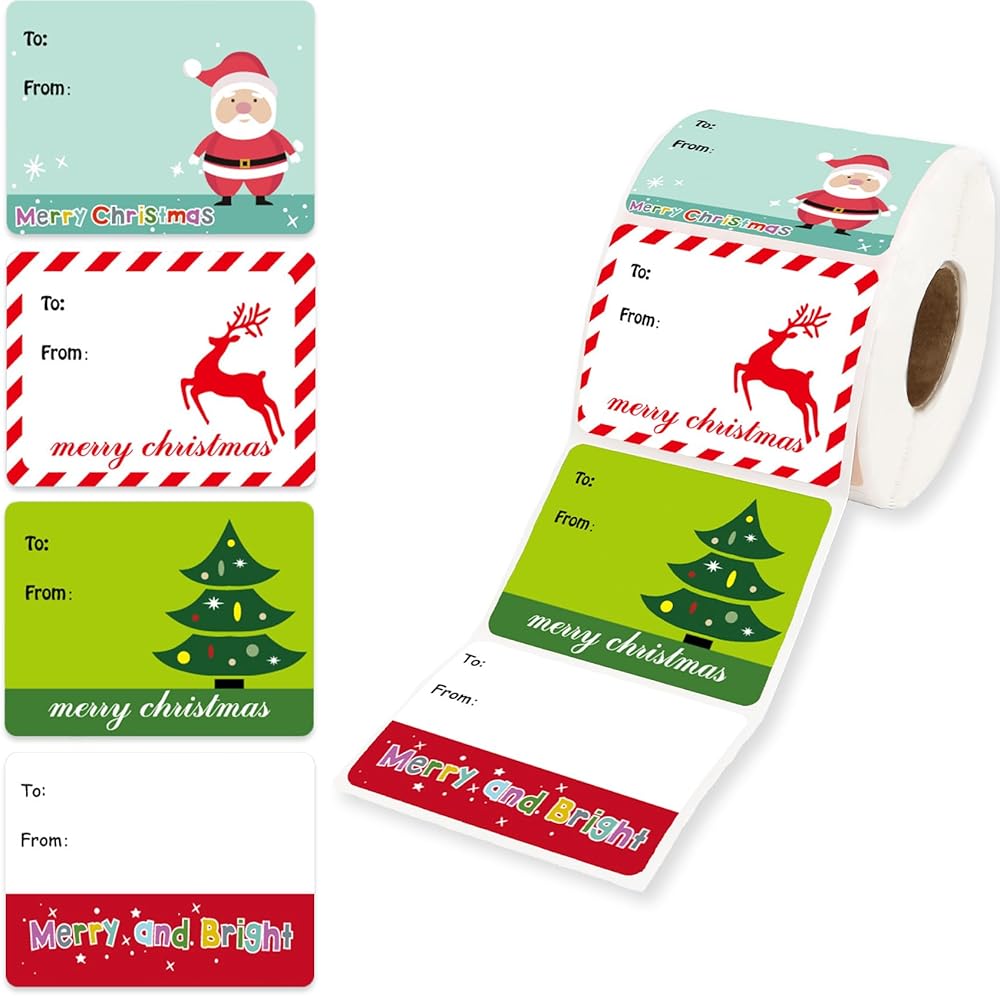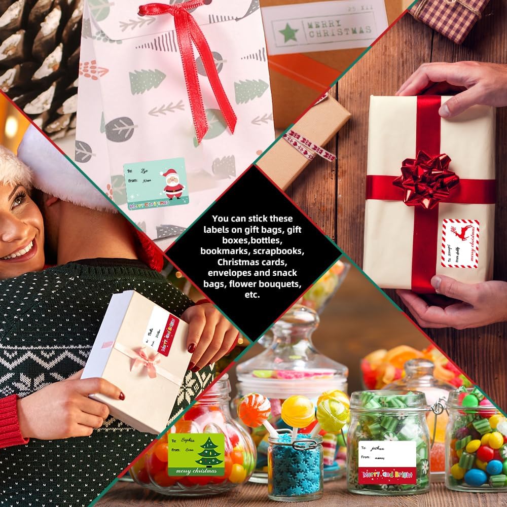 PACKAGE INCLUDES:You will receive 500 christmas tags stickers with "To" and "From" printed on them, lots of them, 6 different designs, each label measures 1.6"W x 2.4"L. The christmas name tags have enough space to write the recipient's name and the giver's name