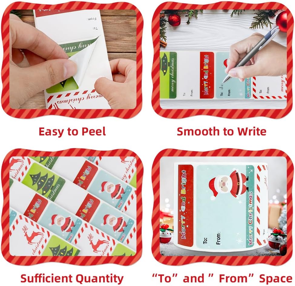 GOOD QUALITY: Christmas gift tags self-adhesive are made of high quality paper material, good printing quality, smooth writing, easy to peel and stick, suitable for most smooth surfaces, which can bring you a good using experience