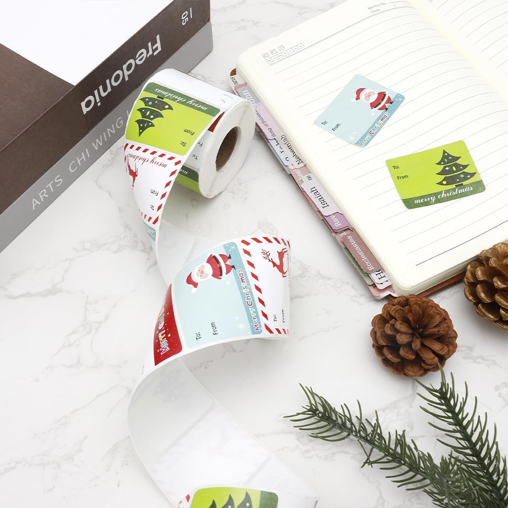 500Pcs Christmas Gift Tags, Christmas Labels Stickers, Self Adhesive Christmas Name Tag Stickers for Presents, Christmas Gift Labels, Christmas Stickers Xmas Santa Holiday Decor