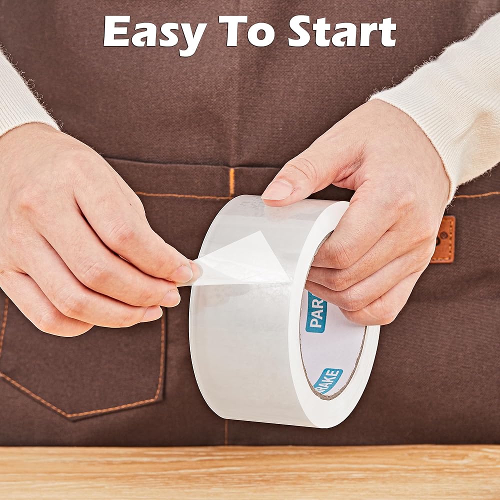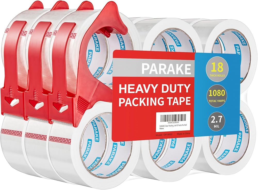 12 ROLLS PACKING TAPE: PARAKE Packing Tape with 2 Dispenser, 12 rolls, 60 yards length x 1.88-inch width per roll, total 720 yards, packing Tape with dispenser is convinient to use and which can also offer excellent holding power for your moving, packing and shipping needs.