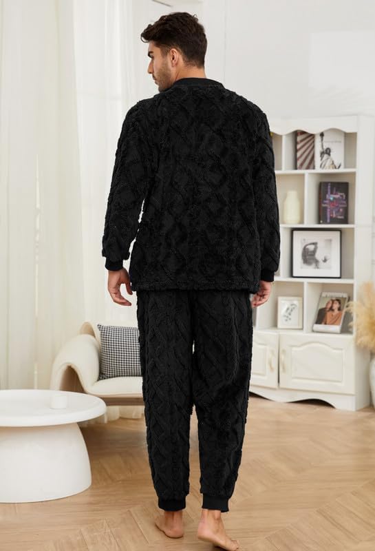 Super Soft Plush & Premium Material: Men's pajama sets adopt a long jacquard plush that feels incredibly soft and fuzzy. The long, fluffy fibers provide exceptional warmth and comfort in cold weather, making it perfect for relaxing, lounging, and sleeping.