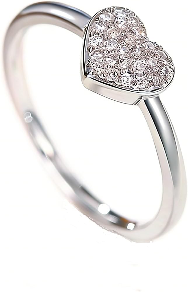 Cute Shiny Heart-shaped Diamond Or Moissanite Halo Engagement Promise Bridal Ring for Women Simple Iced Out CZ Thin 925 Sterling Silver Wedding Luxury Love Heart Anniversary Bridal Ring Size 6