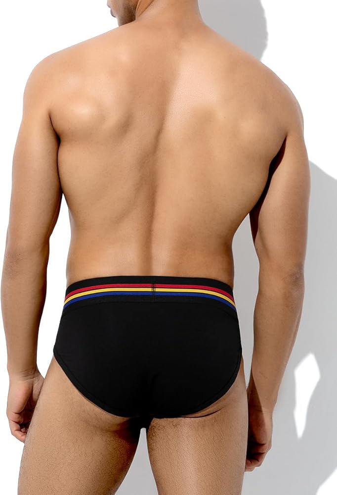 4 PACK FASHION CONTRAST COLOR: We bring you these high-quality mens underwear briefs in 4 stylish and lively contrast color schemes. You will receive four pair of well-made men's sports underwear briefs with exquisite silicone logo on the front.
