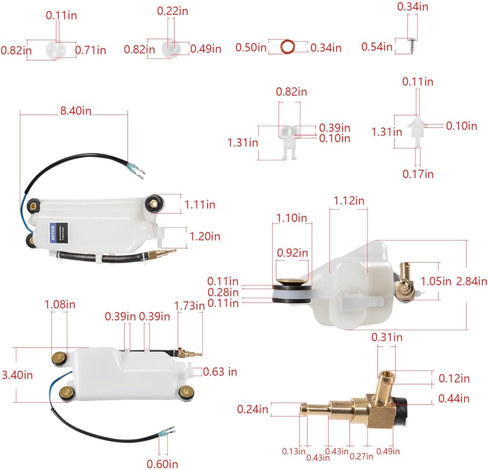 【Assembly Includes】1x Plastic Oil Reservoir Tank;2x blue wire sensors; 1x oil reservoir tank hose. The sensor and the hose are manufactured strictly as your old oil tank and can be perfectly connected with the original adapter.