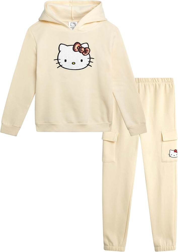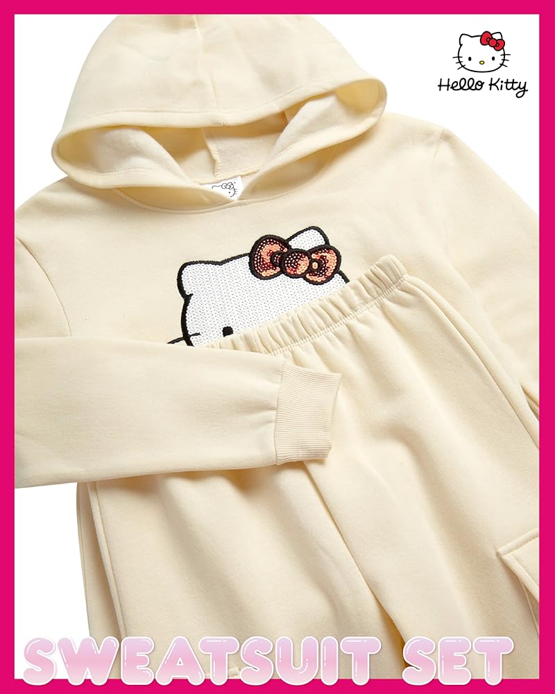 She'll love the cute style of this outfit starring Hello Kitty! Hello Kitty outfit Hoodie with graphic applique and ribbed trim (60% cotton, 40% polyester) Joggers with elastic waistband (60% cotton, 40% polyester) Machine wash cold Made in China