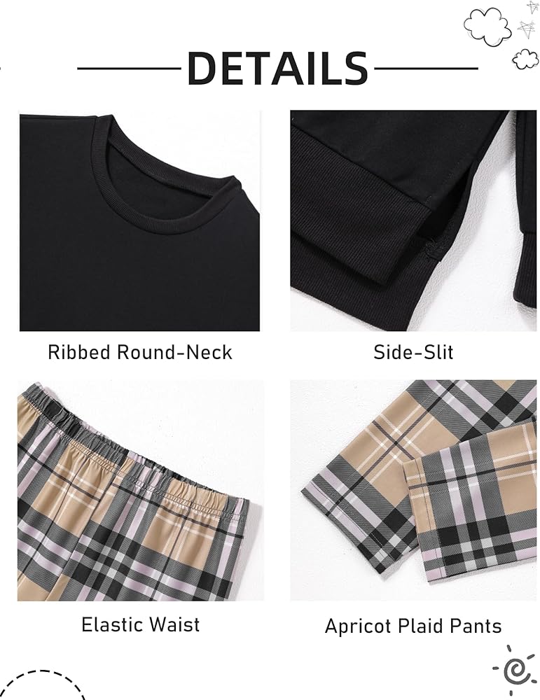 MATERIAL:Girls 2 piece outfits top is made of 35% cotton,65% polyester,pants crafted from a 95% polyester,5% spandex,comfortable,soft and skin friendly to wear suitable for wearing in fall and spring