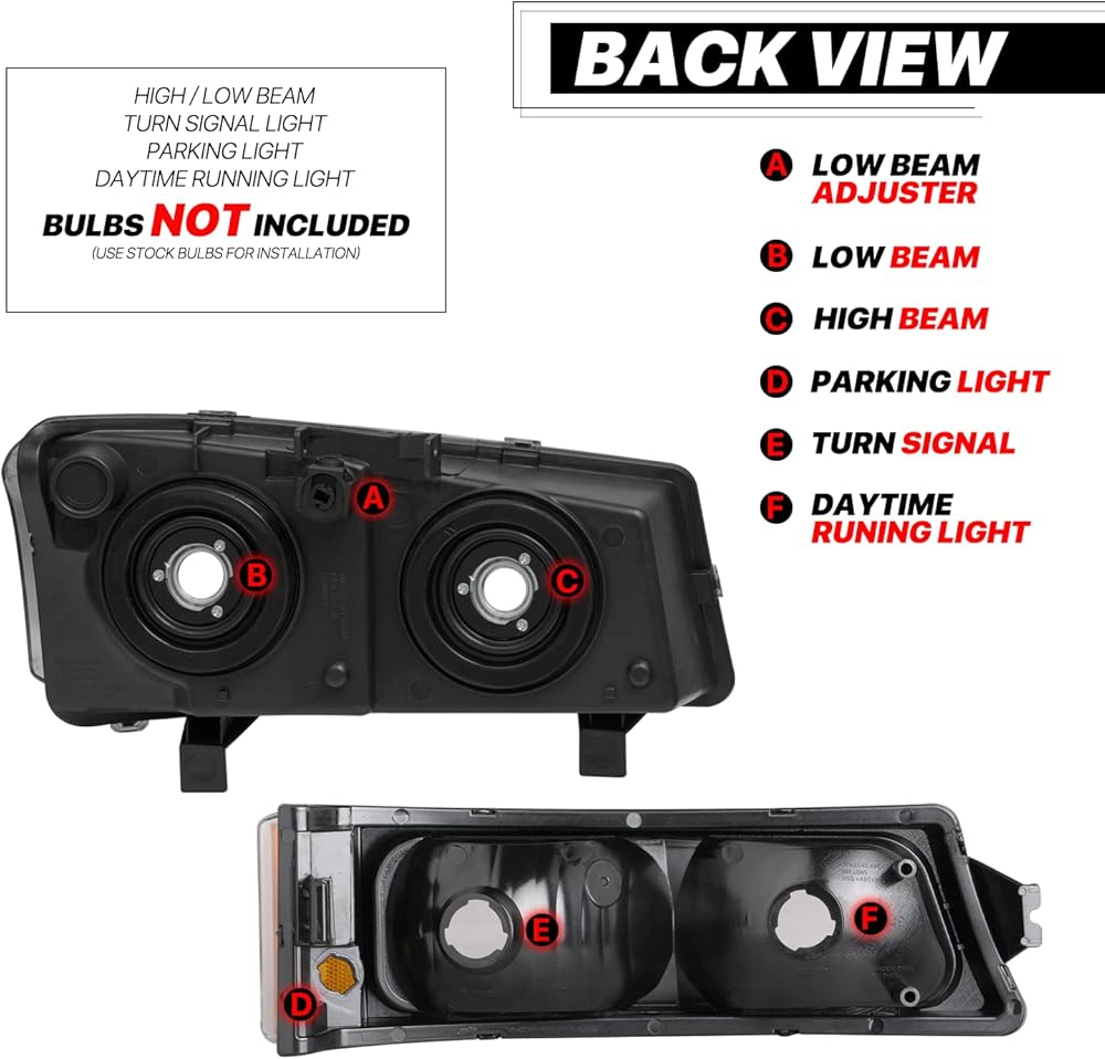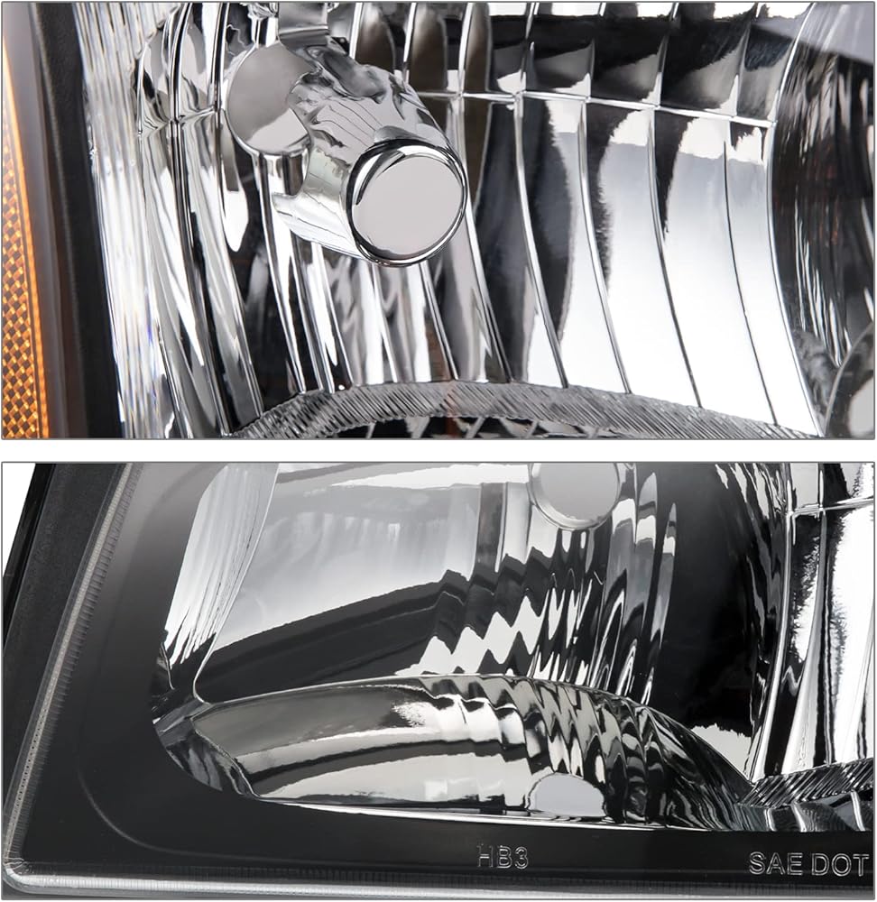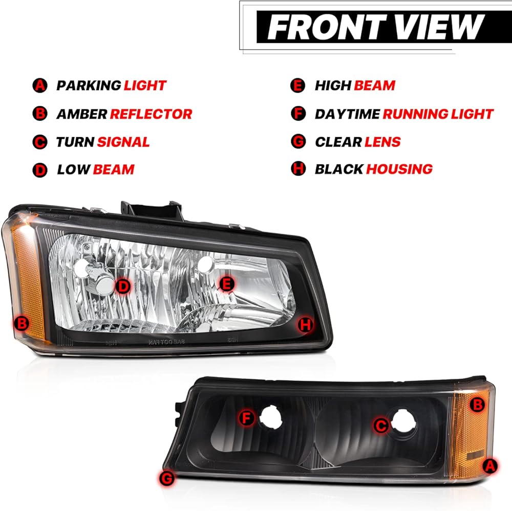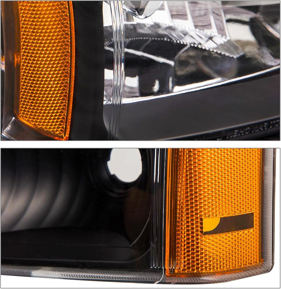 M-AUTO Headlights Assembly with Bumper Lamps Compatible with 2003-2007 Chevy Avalanche Silverado 1500 2500 HD 3500 Non OE Cladding, Driver and Passenger Side, Black Housing Amber Corner