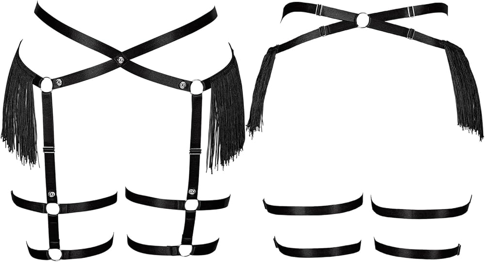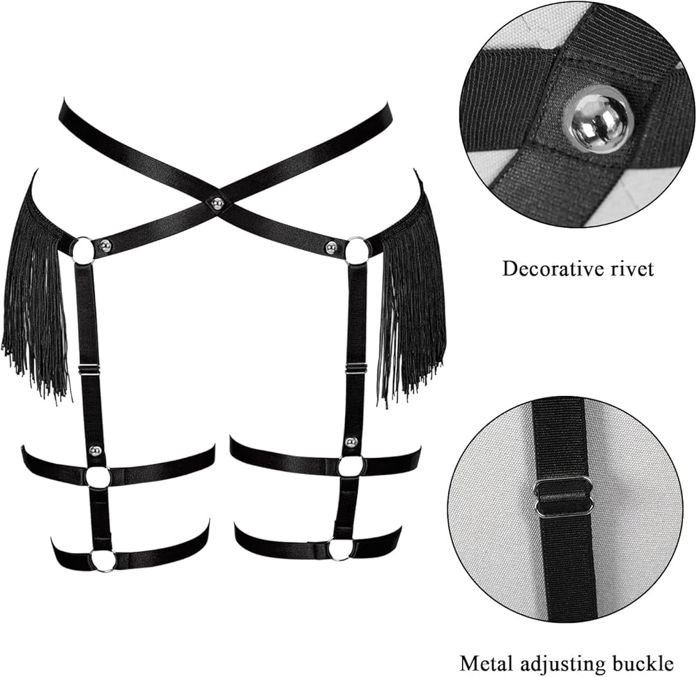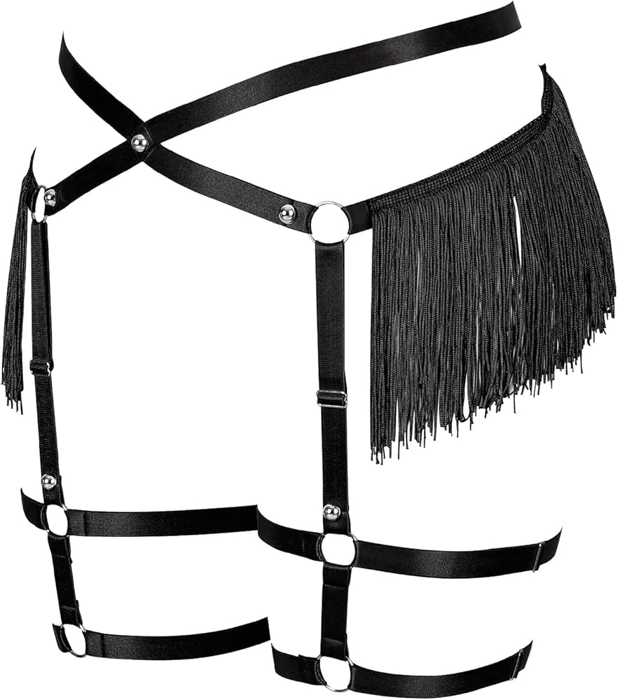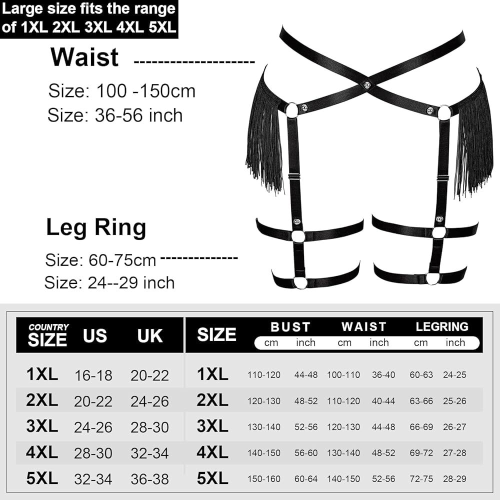 Plus Size Women Punk Gothic Garter Belts Harness Cross Tassel Hollow Out Full Cage Leg Belt Halloween Rave