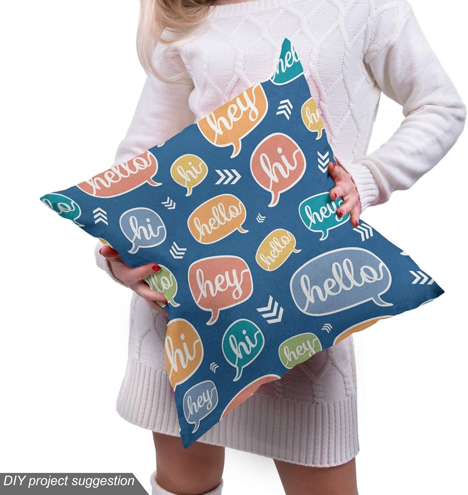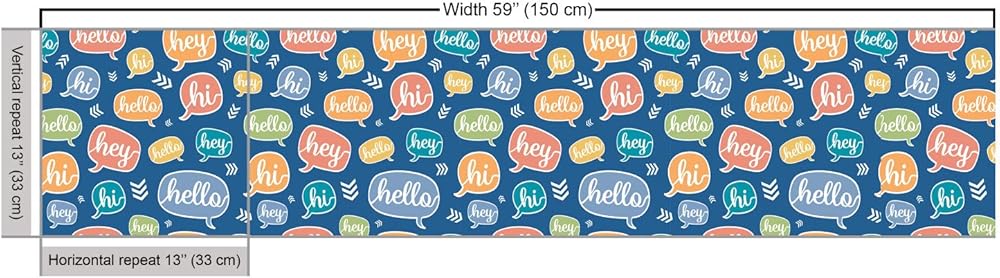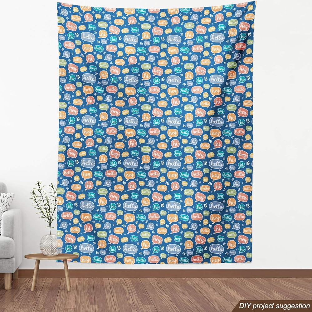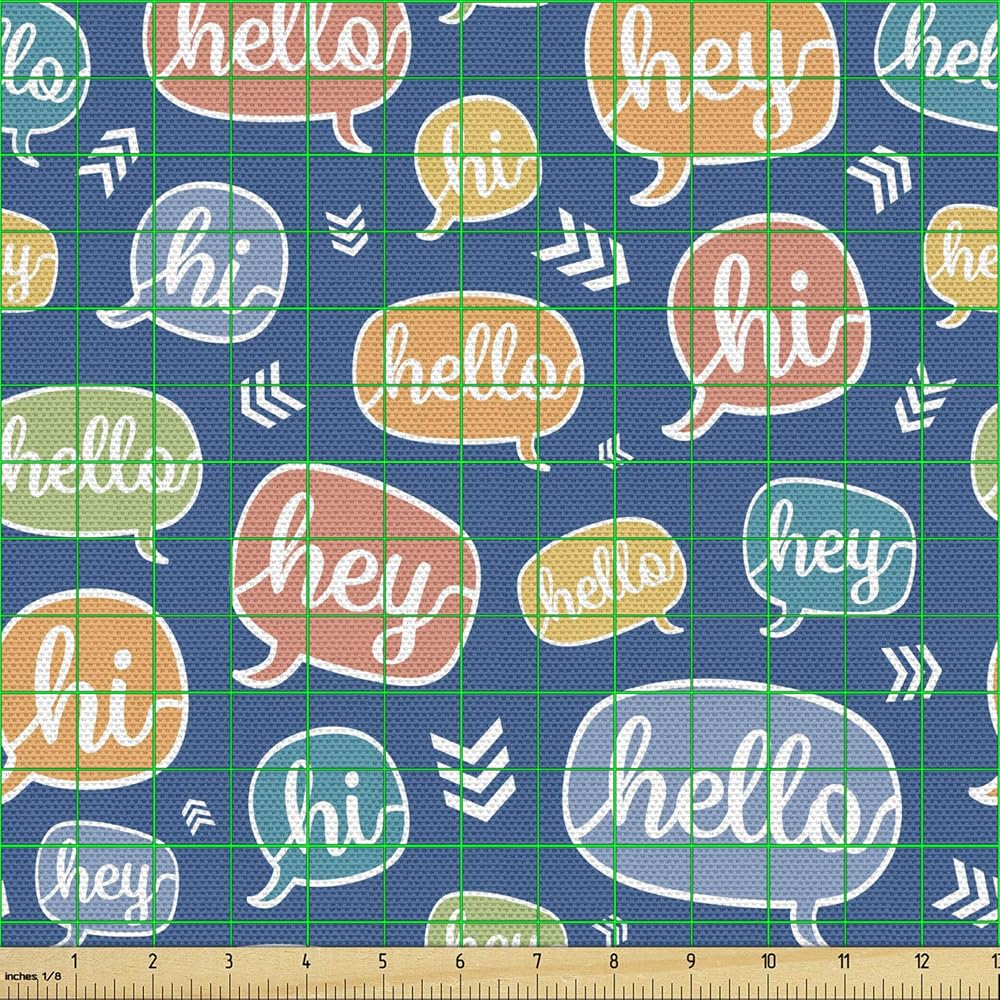 Ambesonne Hello Fabric by The Yard, Continuous Hi and Hey Typographic Elements in Colorful Speech Bubbles, Decorative Fabric for Upholstery and Home Accents, 1 Yard, Blue Orange