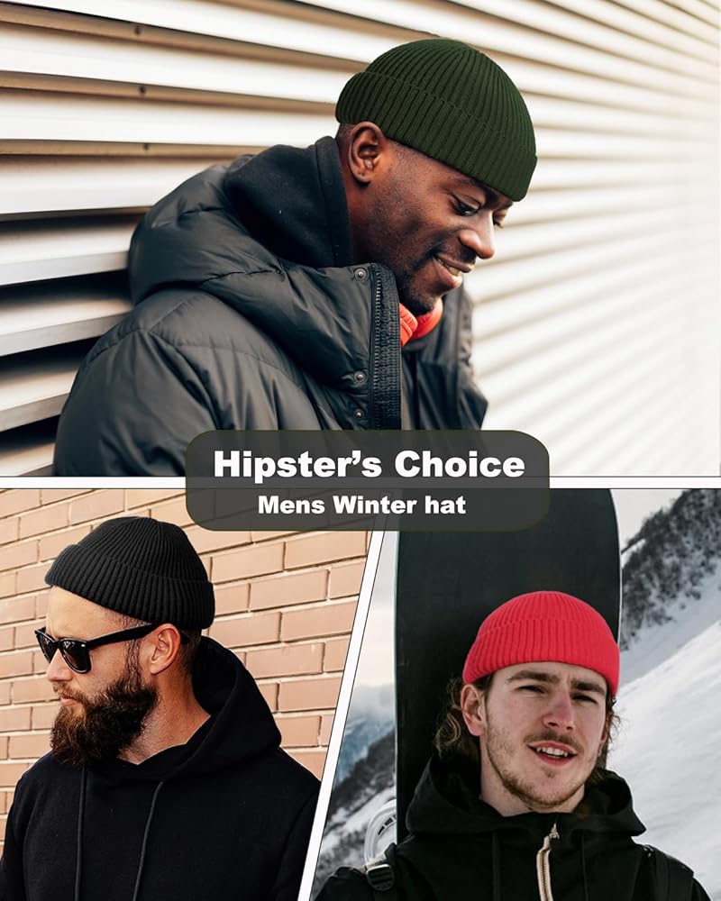 Hipster Essential Beanie for Men: Short plain roll-up edge knitted Trawler Beanie is the most fashionable hat in Spring, Autumn and Winter; Our beanie hat is designed with everyday use in mind; Classic and stylish skull cap in cold weather; GET SWAG
