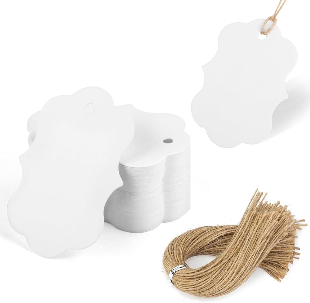 What You Will Get - You will get 100 PCS paper tags, the package also comes with 100PCS hanging strings. Each paper tag measurs 2.8 x 2 inches.