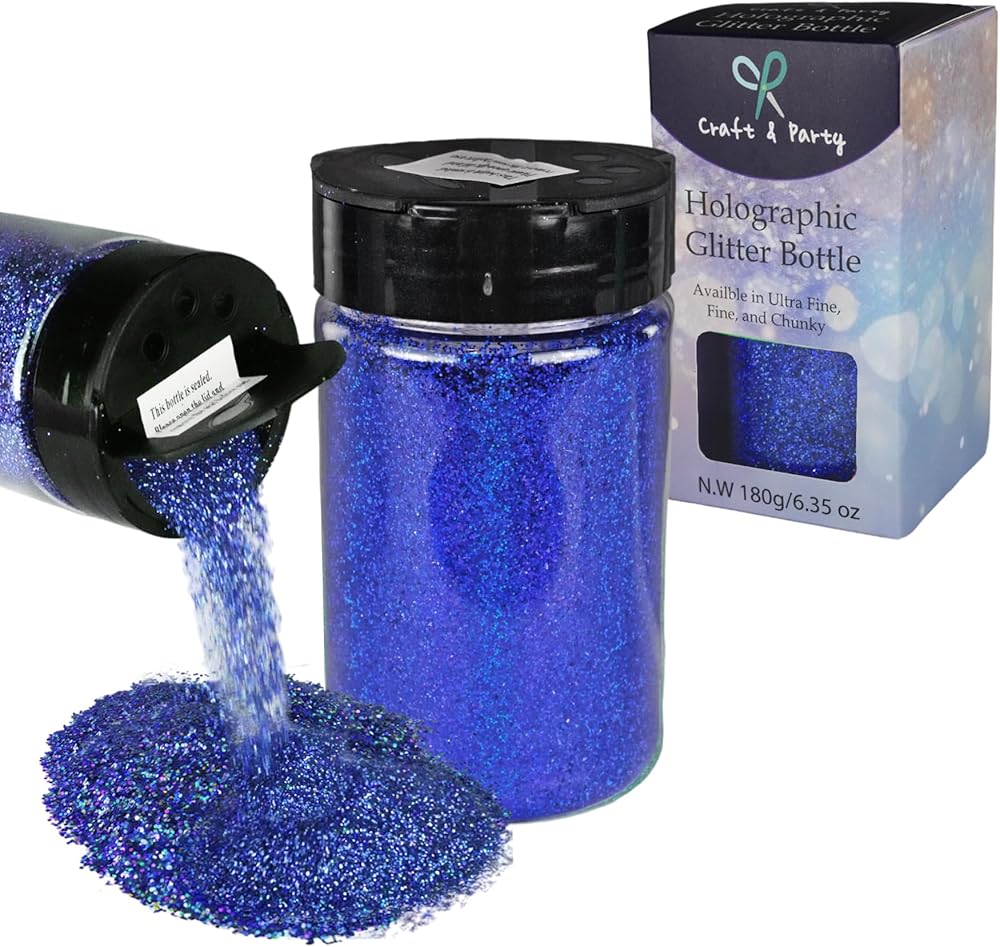 Holographic Shine: Our Silver glitter features a mesmerizing holographic effect, reflecting a spectrum of colors that add depth and brilliance to your projects. Each Bottles contains 6.35 ounces (180 grams)