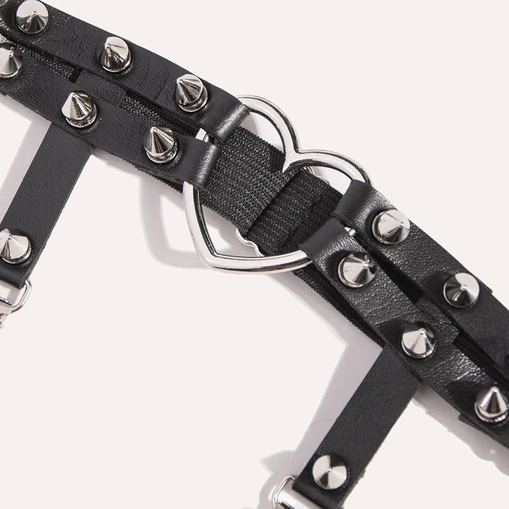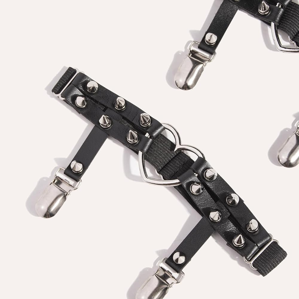 Eye-Catching Details: The heart-shaped leg rings adorned with rivet studs add a unique and edgy flair to any ensemble. Stand out from the crowd with these stylish garter belts.