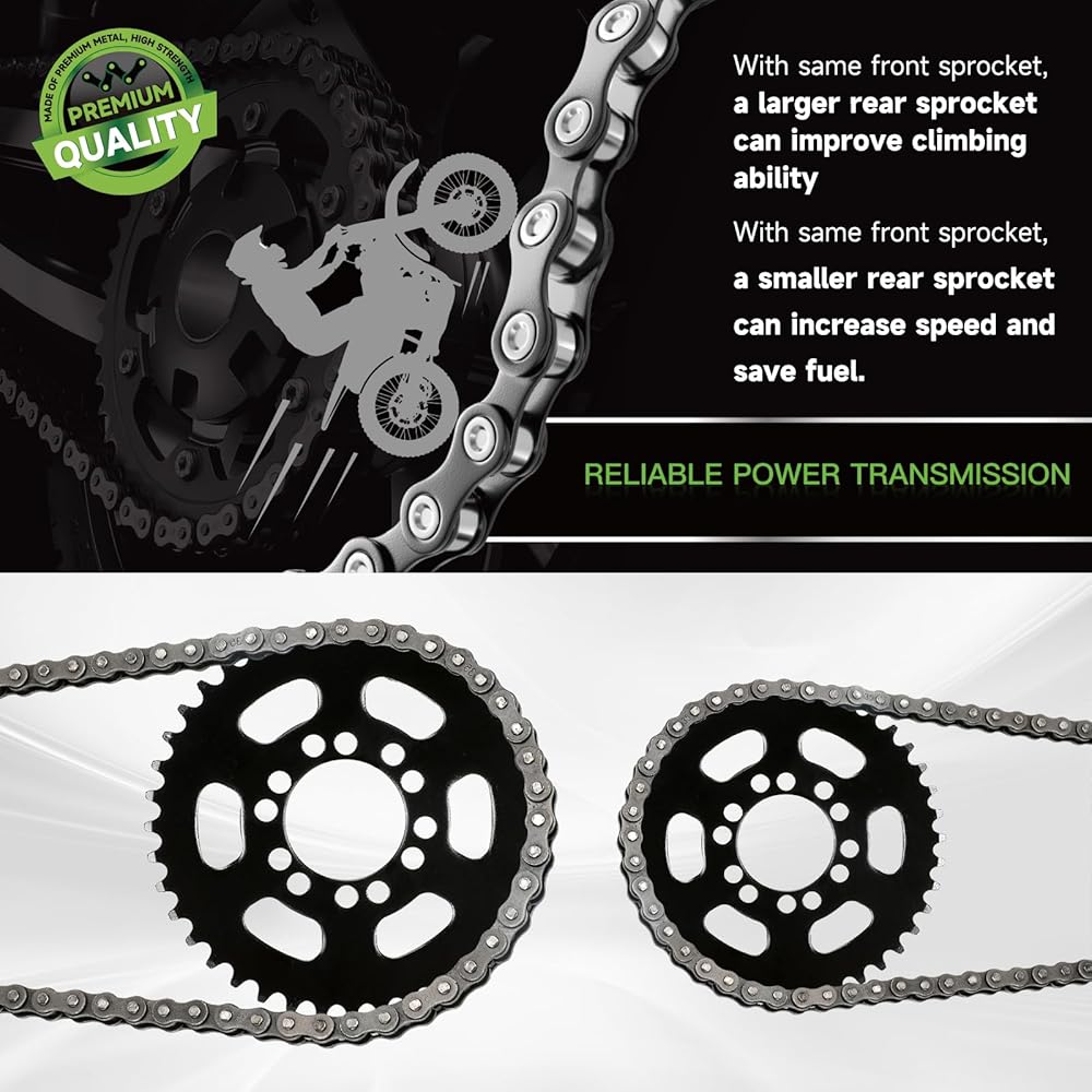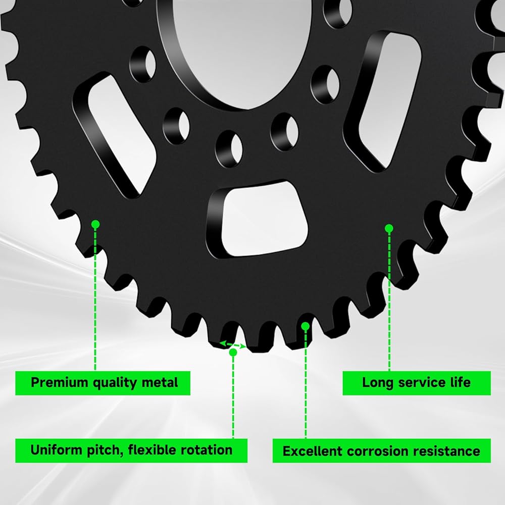 Premium Quality: Crafted from high-quality metal, the 40 tooth #35 sprocket chain offers excellent durability and corrosion resistance. Withstanding all kinds of the toughest terrains. The #35 sprocket's precise manufacturing ensures a seamless connection with the chain to avoid slippage