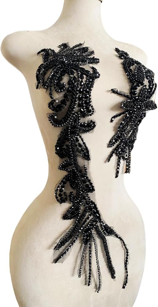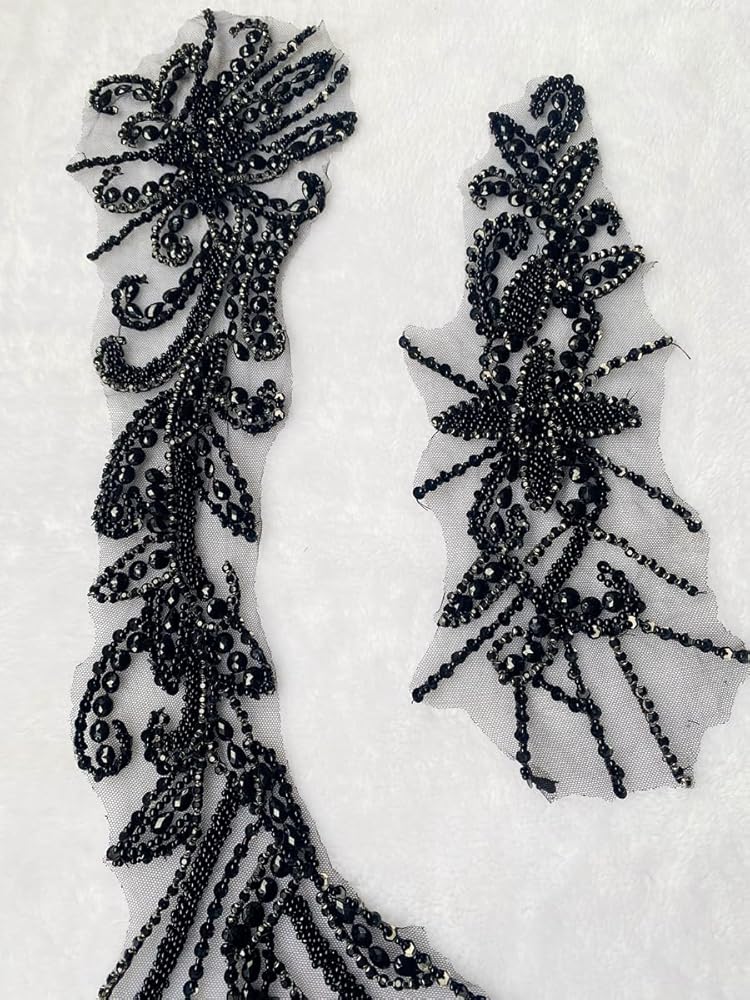 Introducing the MOPISVN Pure Handmade Beaded Crystal Patches Bodice Lace DIY Applique Patches Accessory for Dress Clothes 2PCS/Set 24.4X5.9inches. Our beaded appliqué is a must-have for any DIY enthusiast looking to add a touch of elegance to their dress or clothing piece. The patches are 100% handmade, ensuring top-notch quality and durability. The intricate beading and crystal details are sure to catch the eye and add the perfect amount of sparkle to your design. The patches are versatile and can be easily attached to clothing, bags, shoes, and even home decor items.