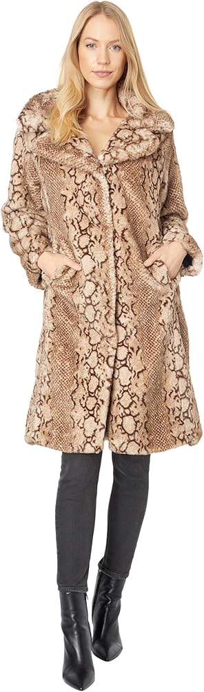 Elevate your style this season in the Thread Collective Python Patterned Bunny Faux . Pull-on styling with a notched collar. Front hook-and-eye closure. Dual side hand pockets. All-over python embossed pattern. Regular fit silhouette with a straight hemline finish. 100% polyester. Lining: 100% polyester. Dry clean. Imported.