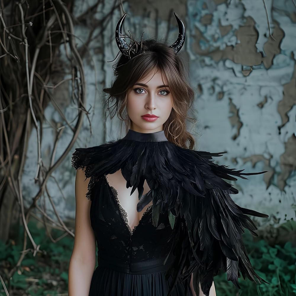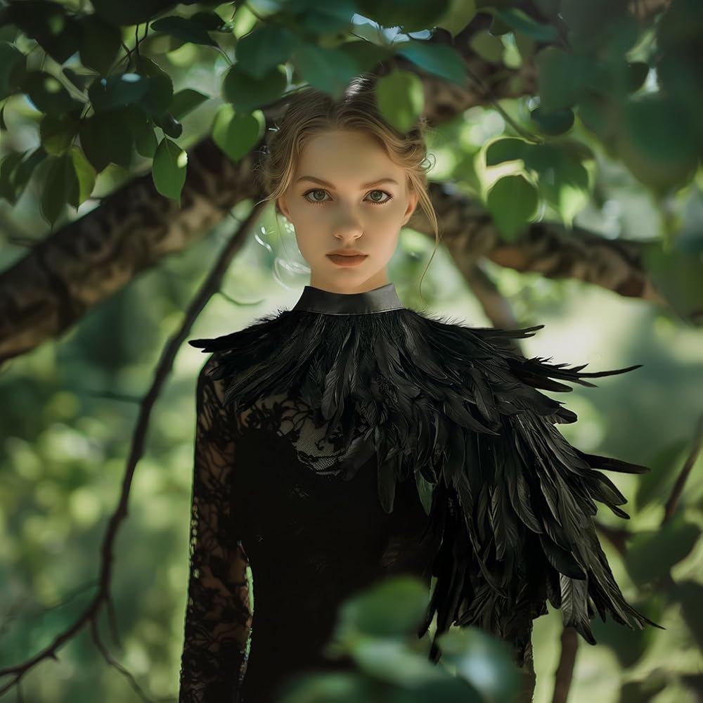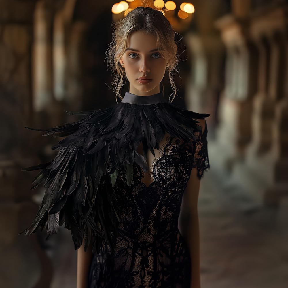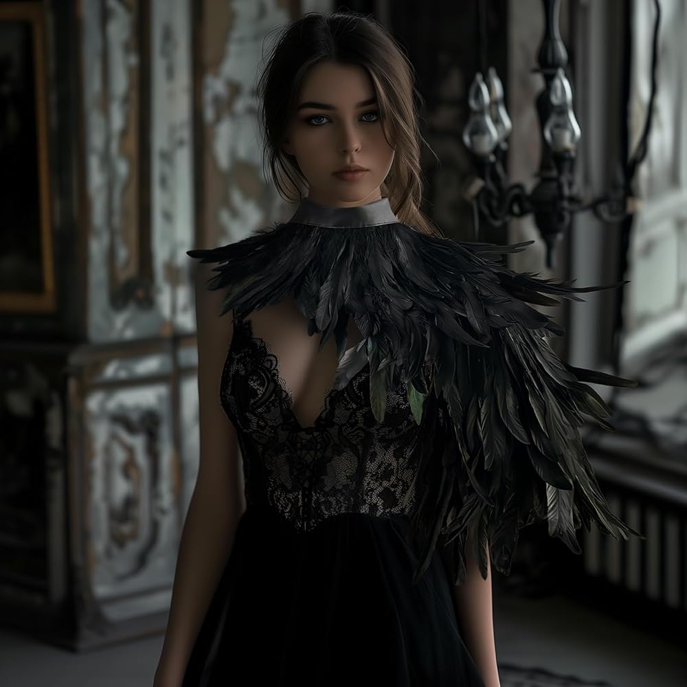 Versatile:This fashionable black feather collar shawl is a must-have accessory that you can use to pair with dresses,short sleeves, and vests.Wearing it will make you mysterious,cold,and unique.
