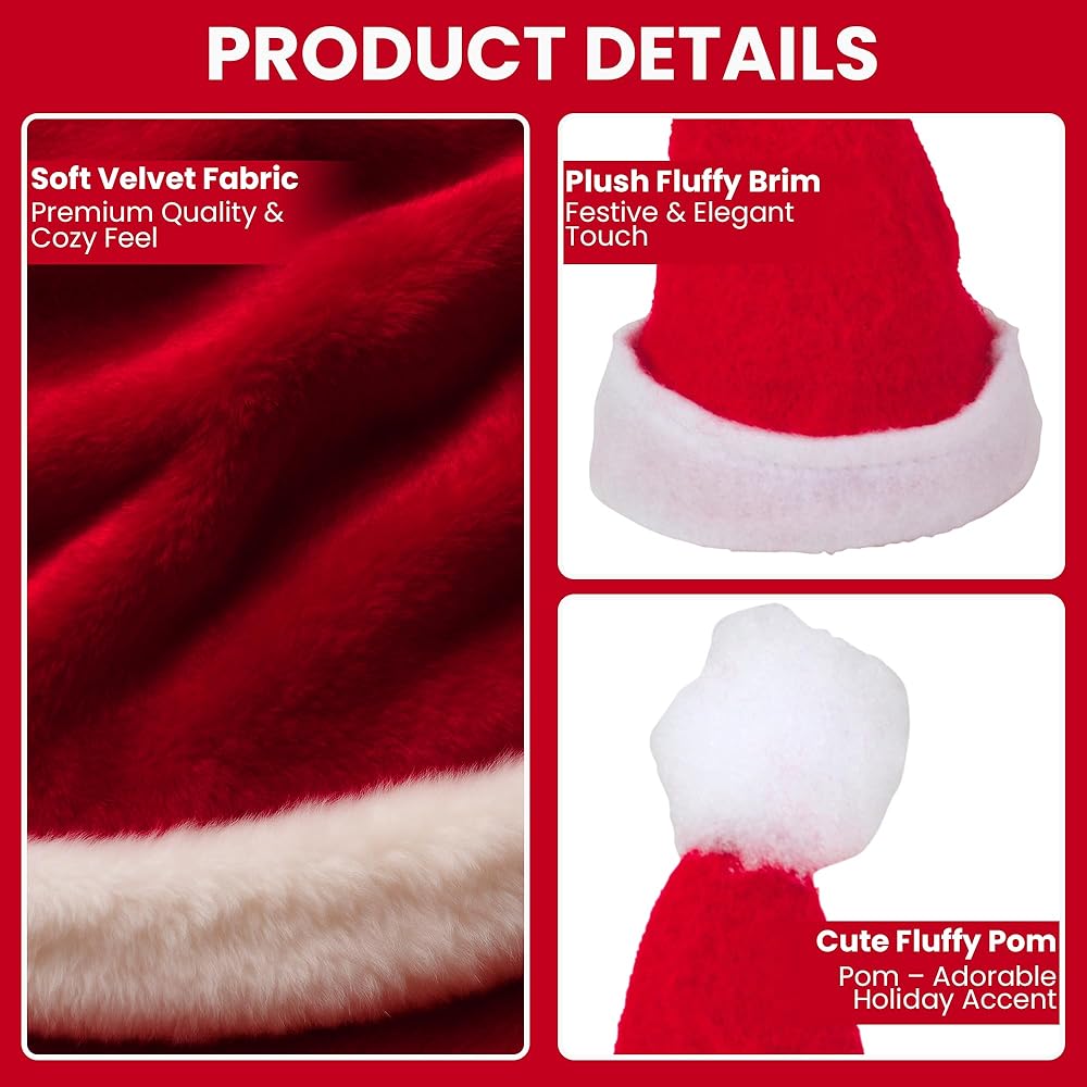 These hats are made from a soft, flexible red felt with white cuffs and pom-pom