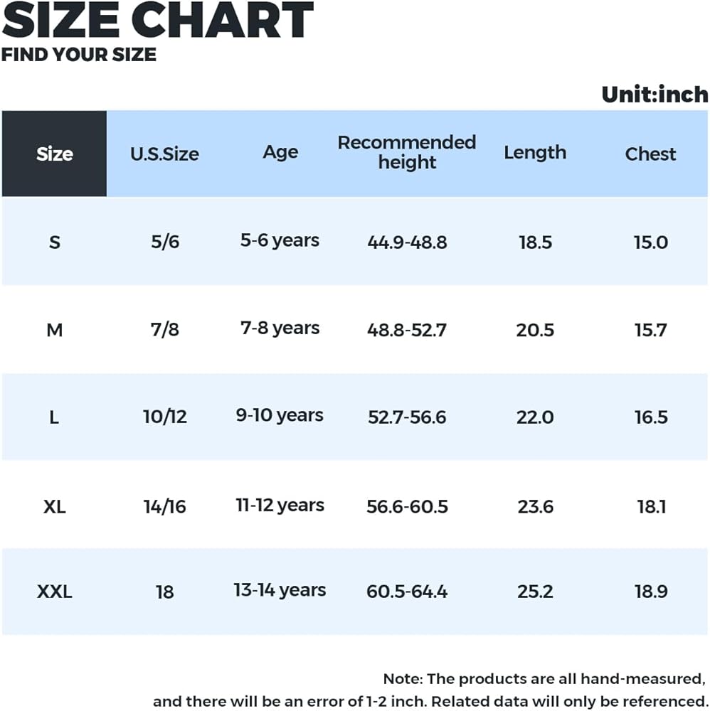 - For your children to wear more appropriate, please REFER to SIZE CHART before ordering