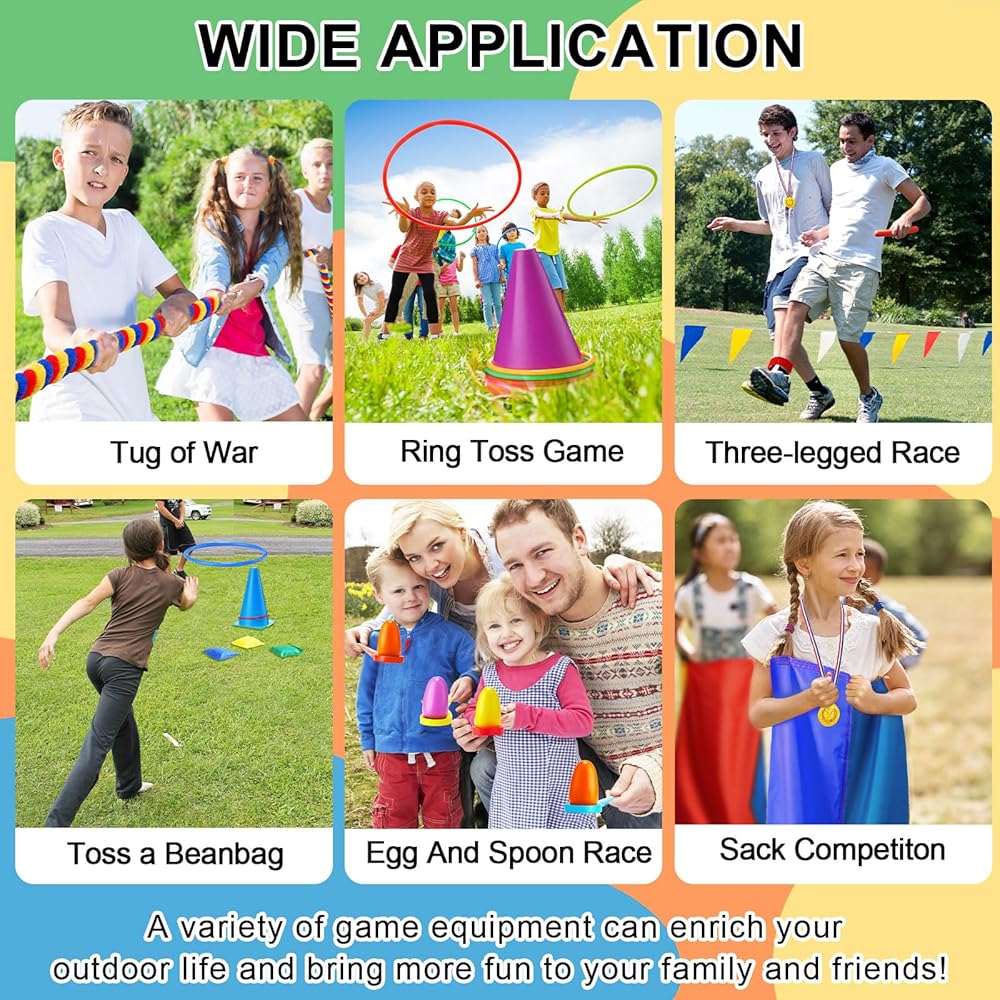 Applicable Occasions: these outdoor game set are not only can be applied for carnival festival, but also can be applied for backyard game, birthday party game, school sports day, family reunion, lawn party, field day game, and also great for Easter, Thanksgiving, Halloween, camping, hiking, picnic, holiday and more; Everyone can enjoy these outdoor party games, making a nice way to leave unforgettable memories and have a ton of fun
