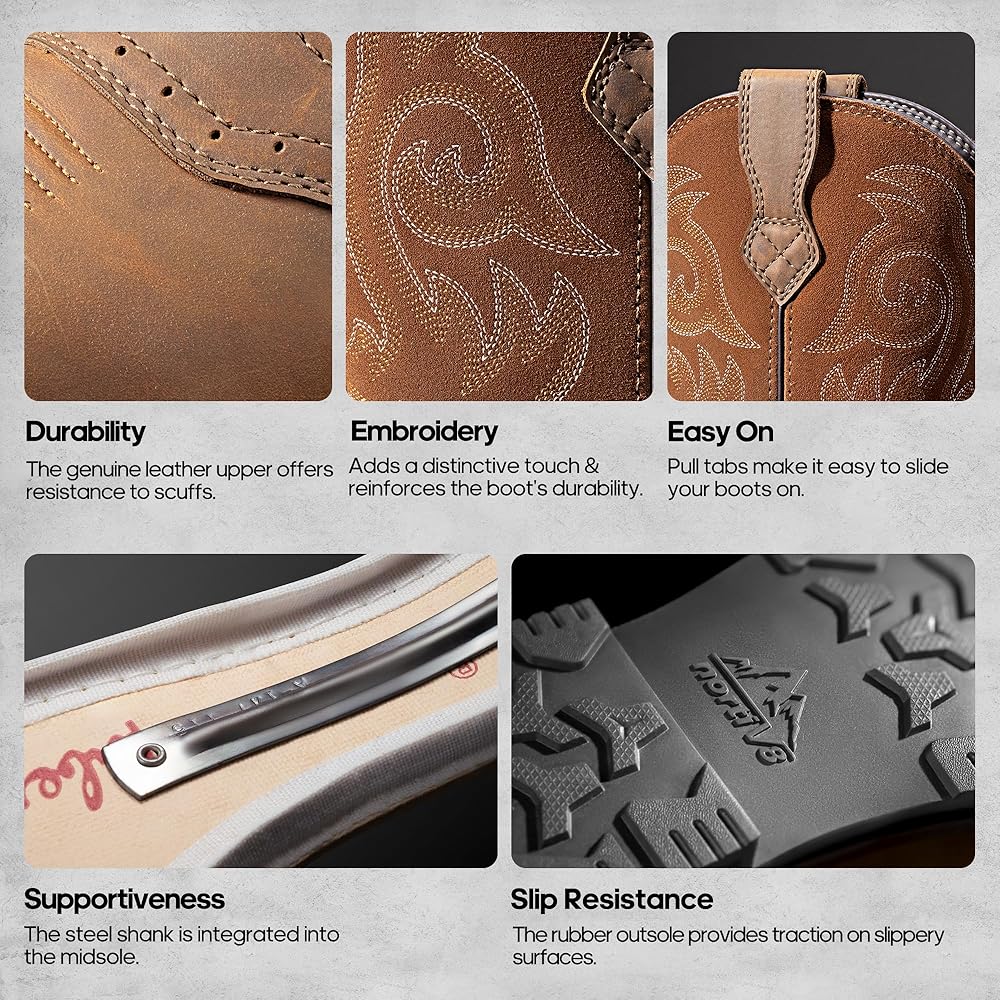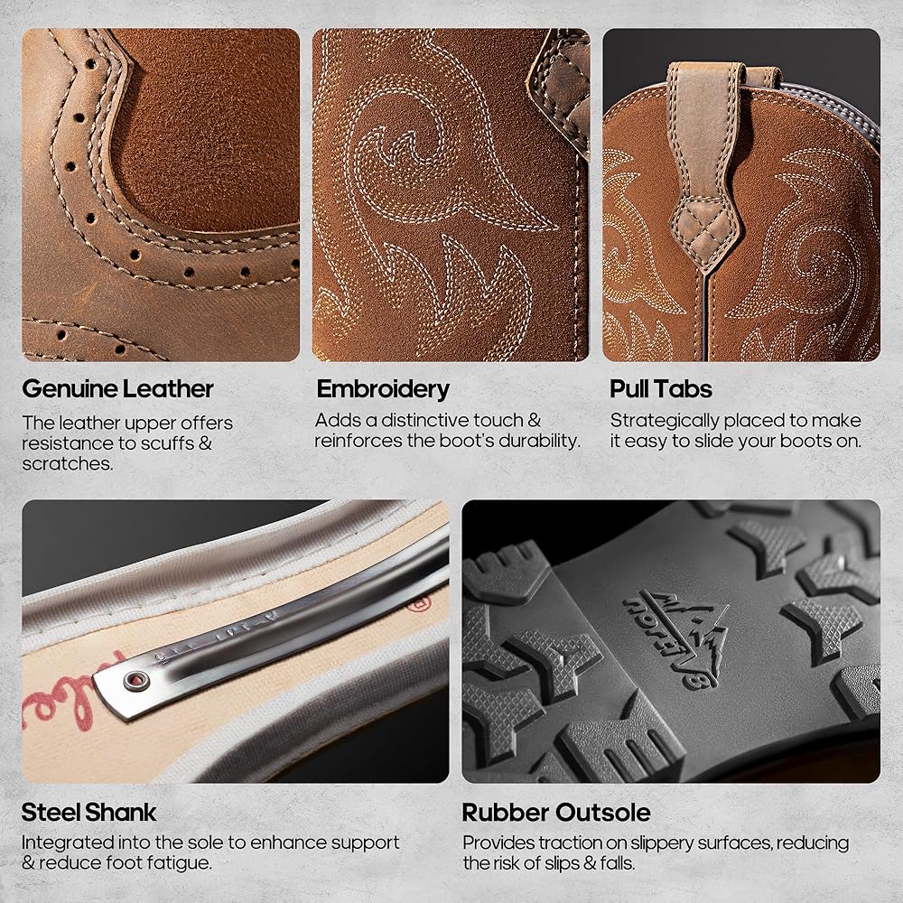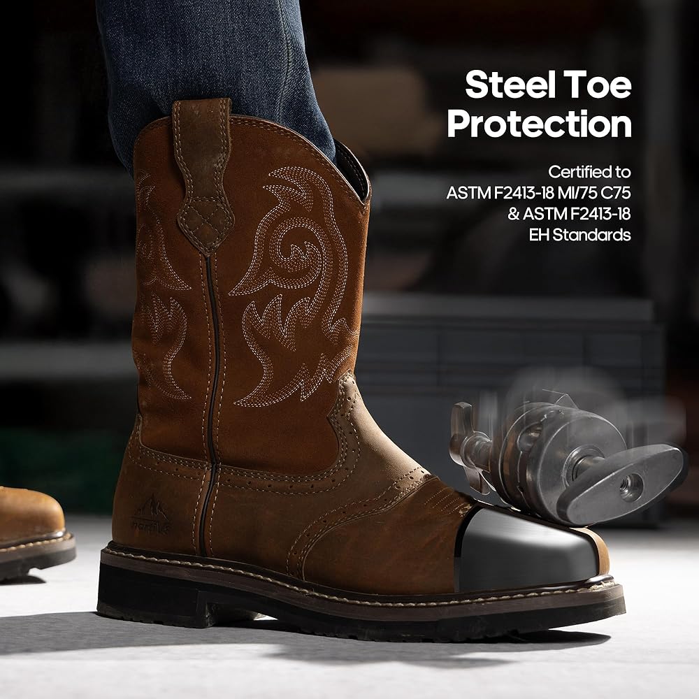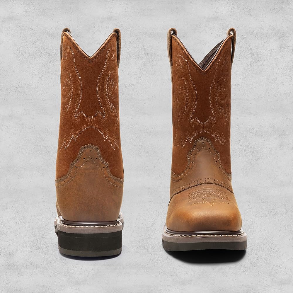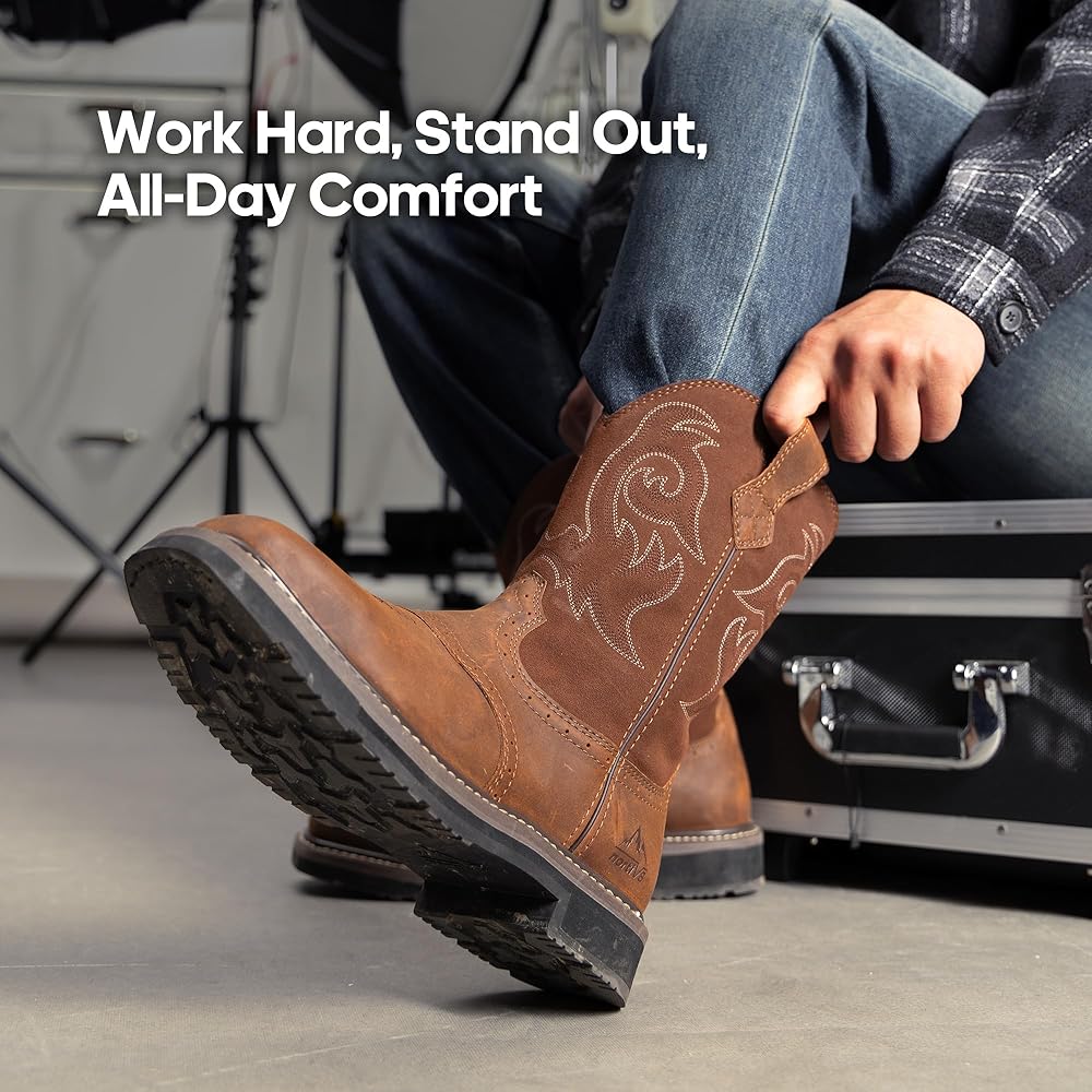 Effortless Wear & Weather Resistance: The pull loop design allows for quick and easy on and off, while the splash-resistant upper ensures your feet stay dry in both indoor and outdoor environments. These men's western-styled work boots are as practical as they are stylish.