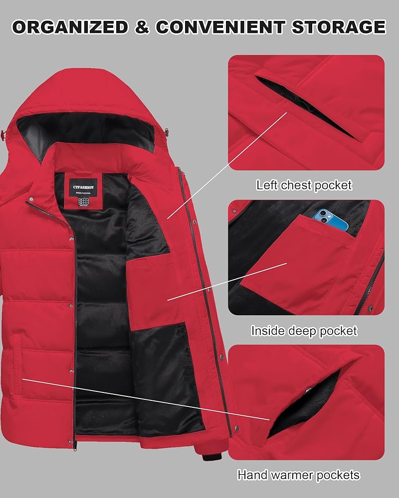 Waterproof winter jacket--Durable water repellent finish sloughs off moisture and wet snow and keep the inside dry, reducing washing times.